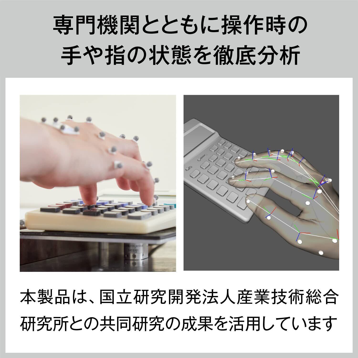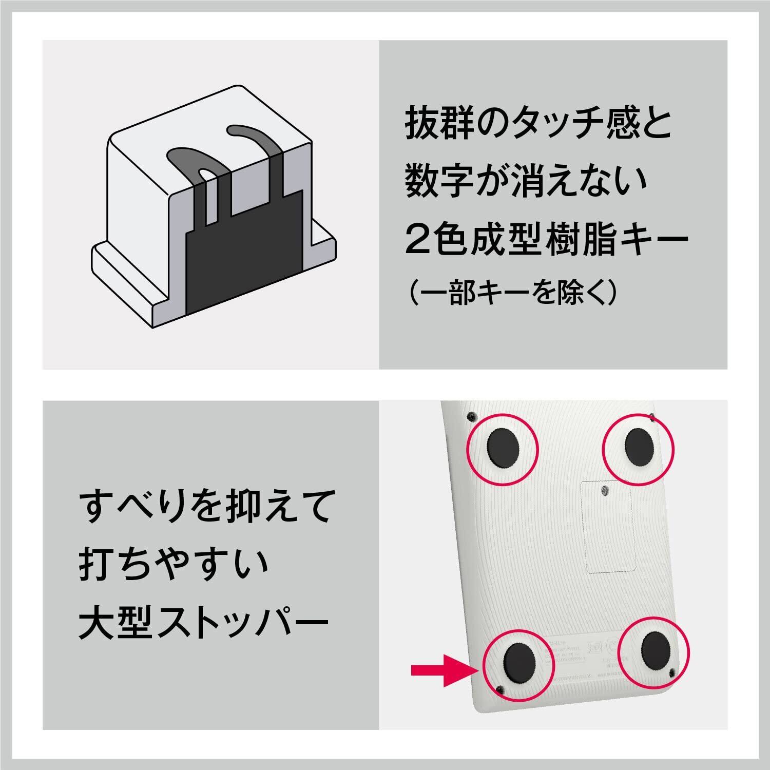 「人が電卓に合わせるのではなく、電卓が人に合わせる」をテーマに、人間工学的知見を用いて筐体やキーを見直し、手へのフィット感や打ちやすさにこだわった電卓です。