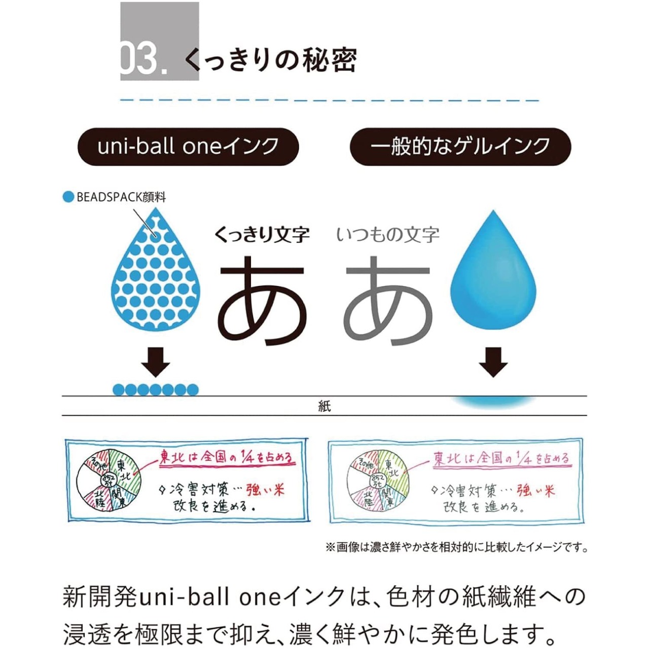 替芯はuni-ball oneシリーズ共通のUMR-38S/UMR-05Sを搭載。自分好みの1本をぜひ探してみてください。
