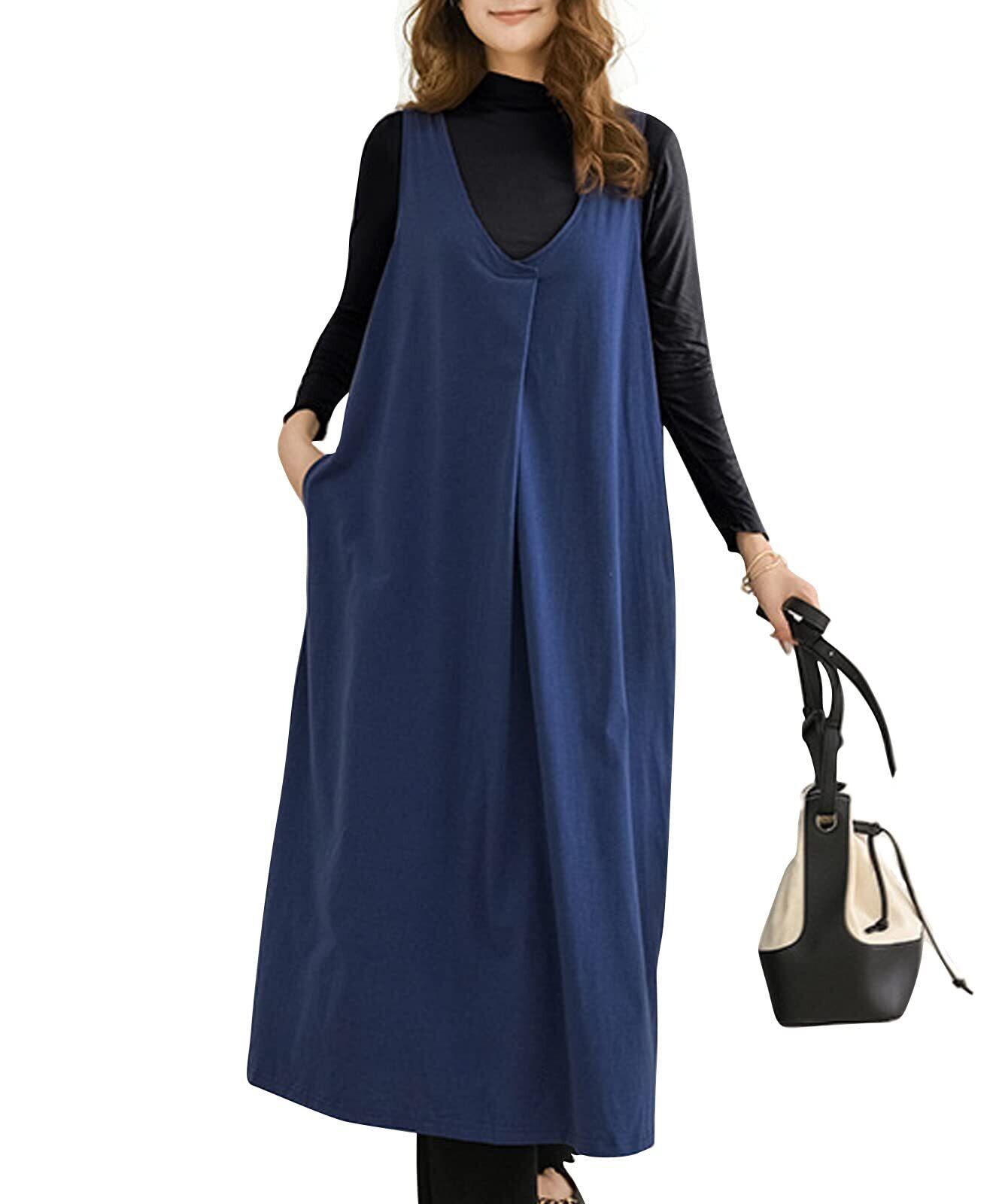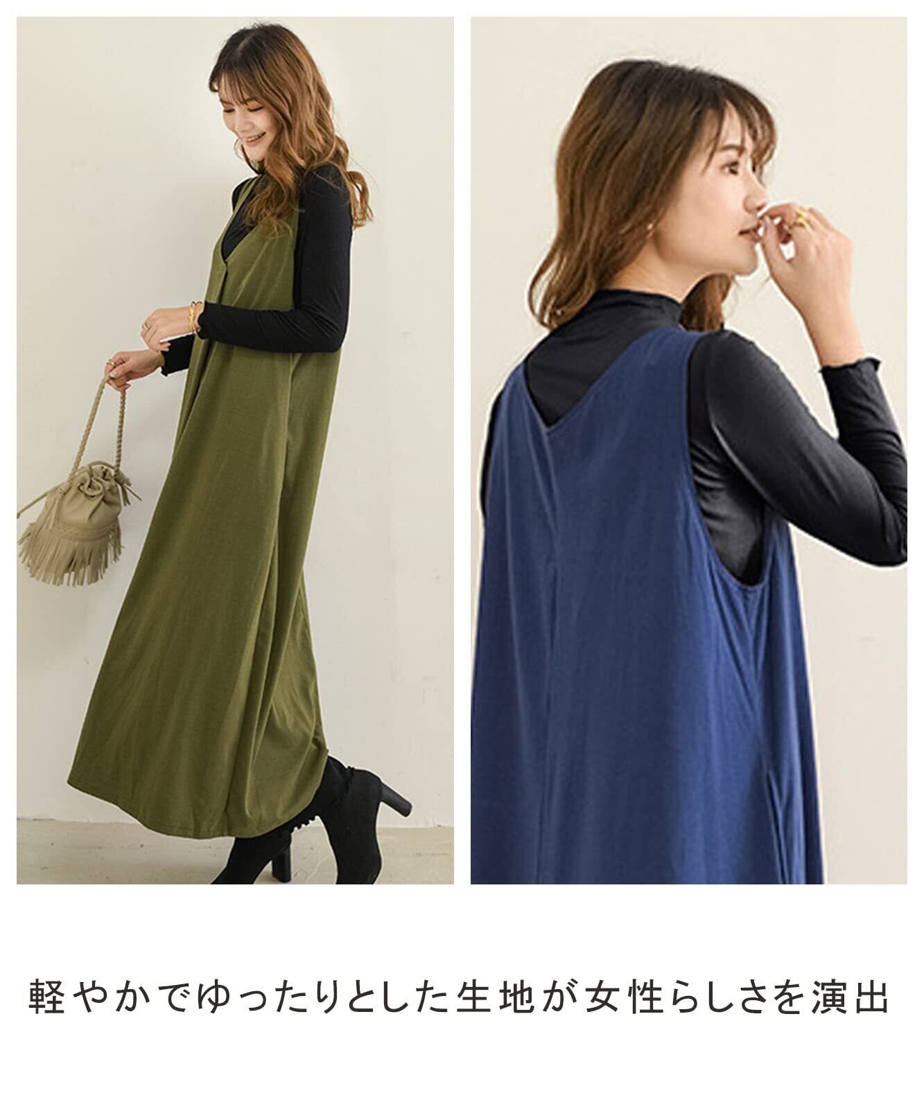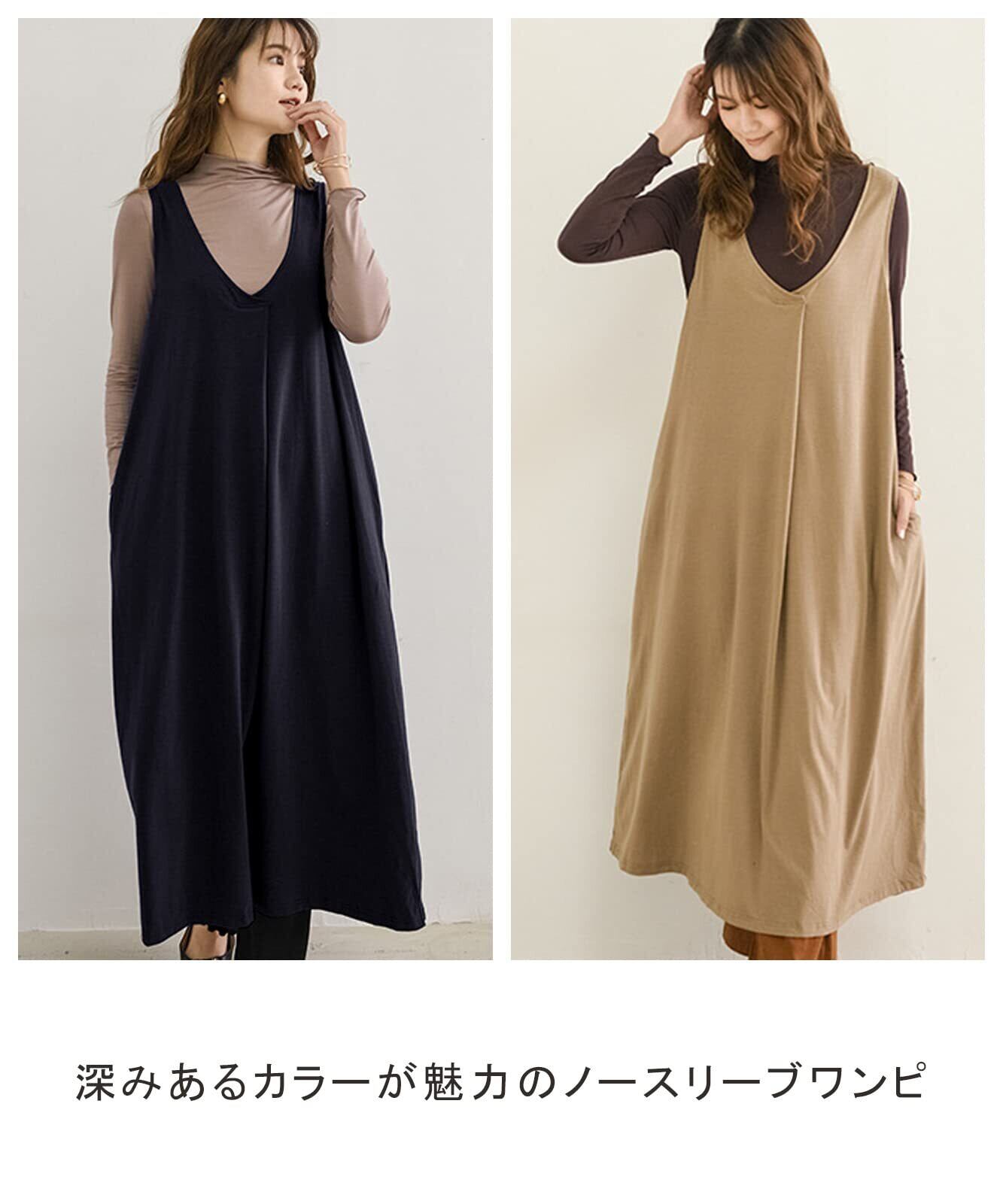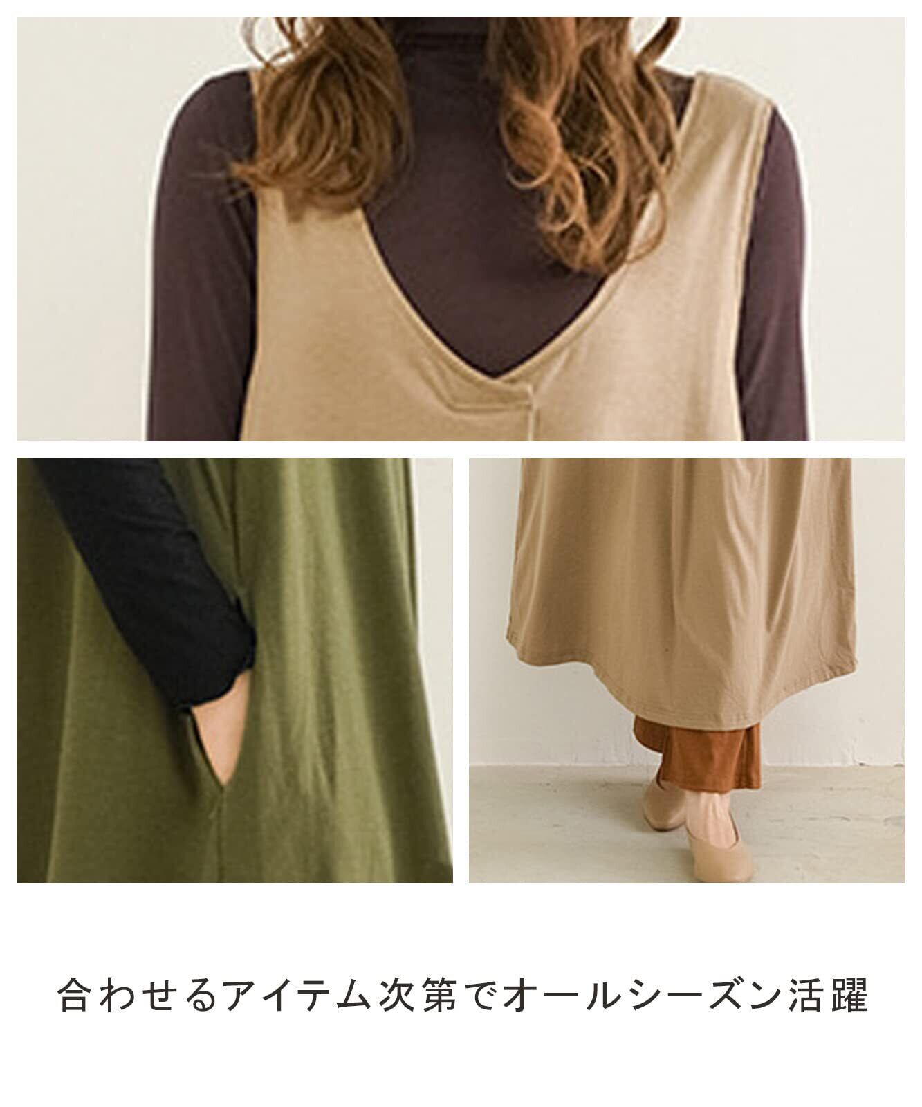秋冬に映える深みのあるカラーが魅力の、ノースリーブワンピースの登場です。軽やかでゆったりとした生地が女性らしさを演出。フロント部分で1層だけ生地が縫い合わされているデザインが特徴で、ドレープのような上品な雰囲気を演出しながら、自然に縦のラインも生み出して綺麗に見せてくれますよ。シンプルなデザインなのでコーディネート次第でカジュアルにもフェミニンにも活躍間違いなし。さらりと快適な生地感が動くたびにふんわりと広がって、女性らしい柔らかいシルエットを形作ります。合わせるトップス、パンツによってオールシーズン着まわせるのも嬉しいポイント◎締めつけ感も無くリラックスして着ていただけるので、ゆったり過ごしたい休日のおでかけや、ルームウェアとしても活躍します。1枚さらっと着るだけでこなれ感を演出してくれるので、気軽にゆったりとお洒落なアイテムを着こなしたい、そんな方におススメなロングTシャツです◎