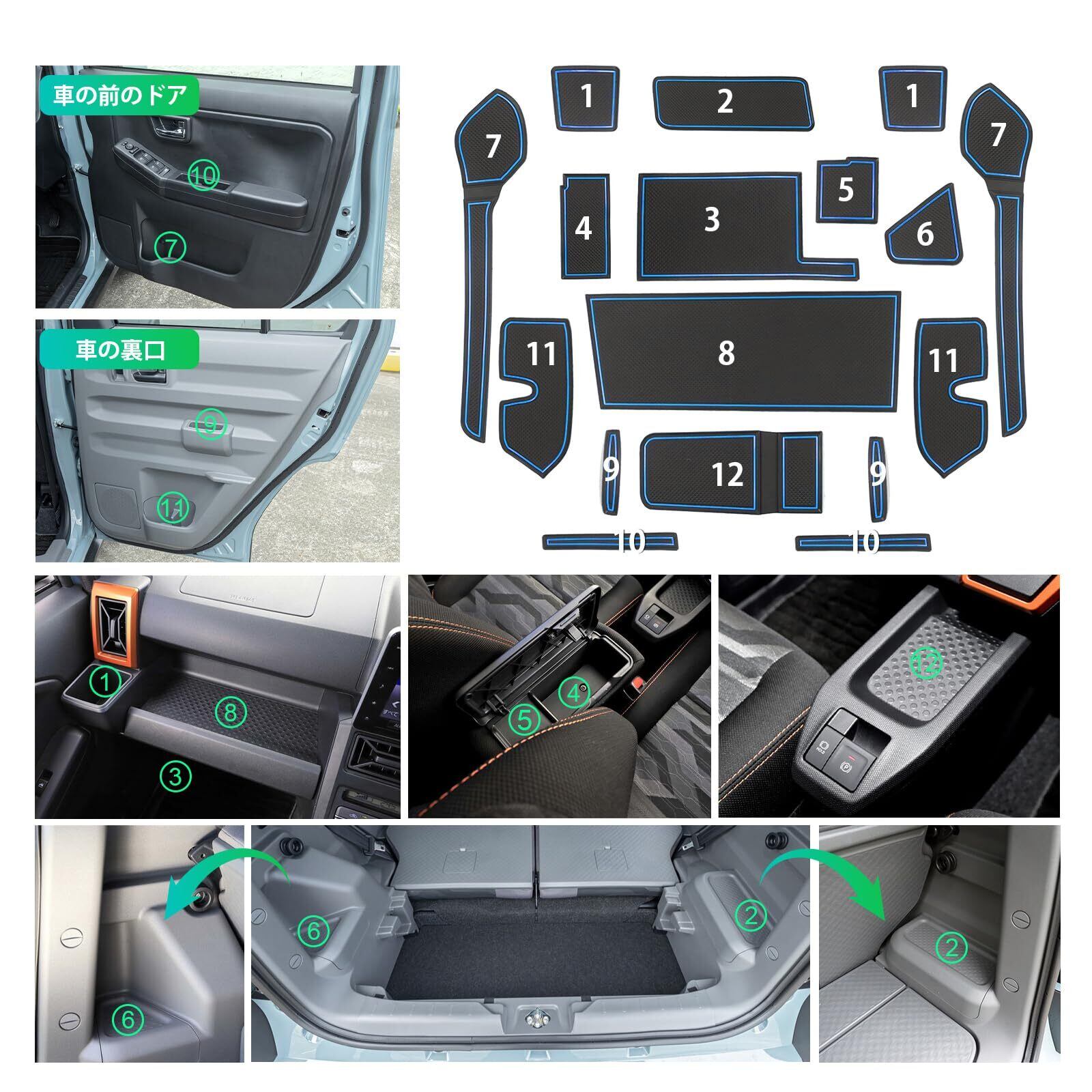 【在庫処分】【GAFAT】ダイハツ タフト LA900S/LA910S型 2代目 2020年~現行 Daihatsu TAFT 新型 専用 ドアポケットマット ラバーマット ゴム 防音 ドリンクホルダー ドレスアップ インテリアラバーマット 汚れ防止 右ハンドル専用 傷防止 滑り止め (ブルー) | ニコニコSHOP