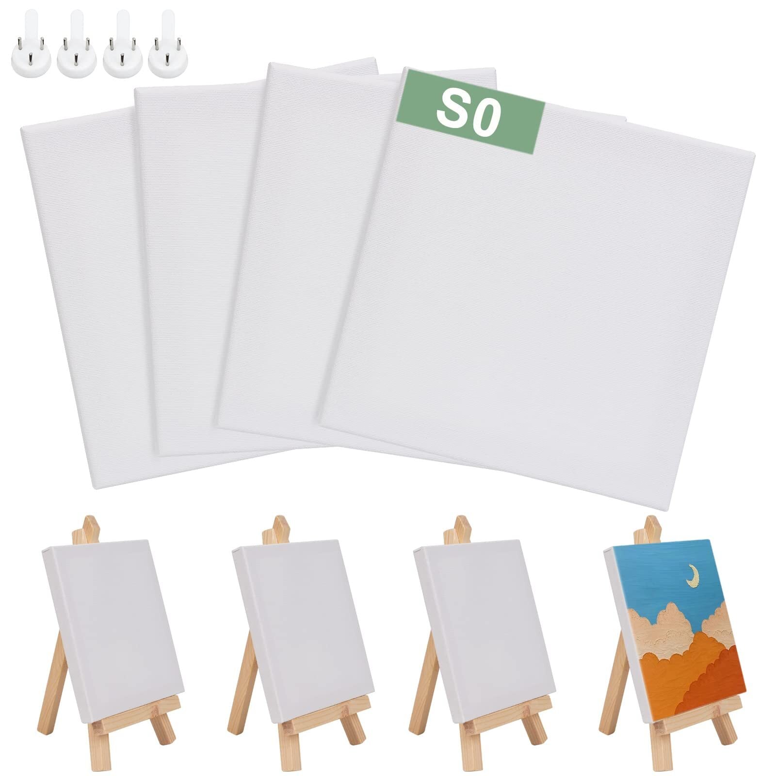 YTOPRO 8枚セット キャンバス S0 木枠 油絵キャンバス 正方形 画材 木枠張りキャンバスボード 油絵画・アクリル兼用 アーティスト画布 オイル漏れ防止 部屋飾り S0サイズ4枚 10*10cmミニキャンバス4枚+イーゼル4個 (正方形8枚セット)