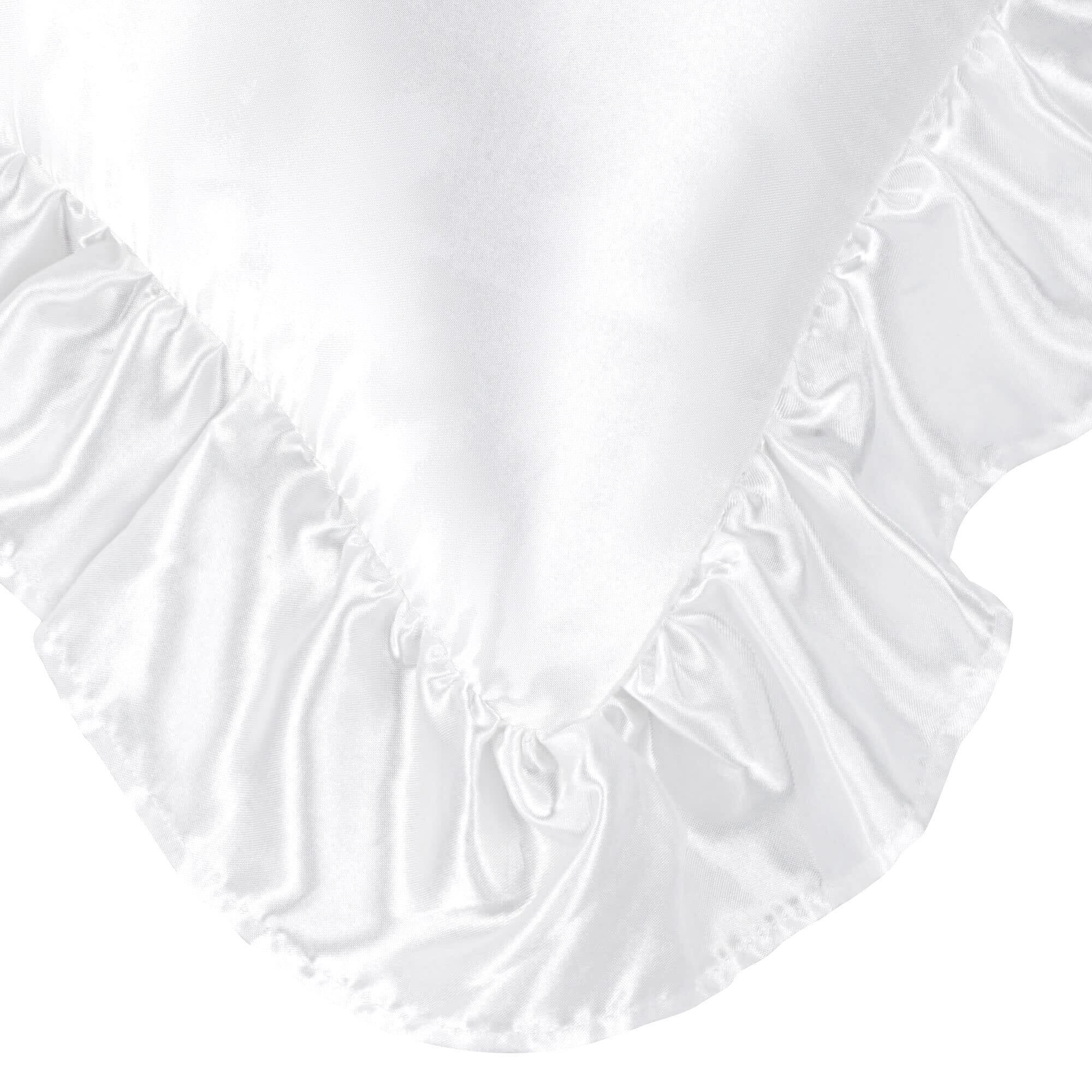 PiccoCasa 枕カバー サテン フリル ひんやり レーヨン 封筒式 接触冷感 ピローケース 2枚 セット シルクみたい柔らかい 両面枕カバー 無地 防臭 美髪 美肌 白い 43 x 63cm