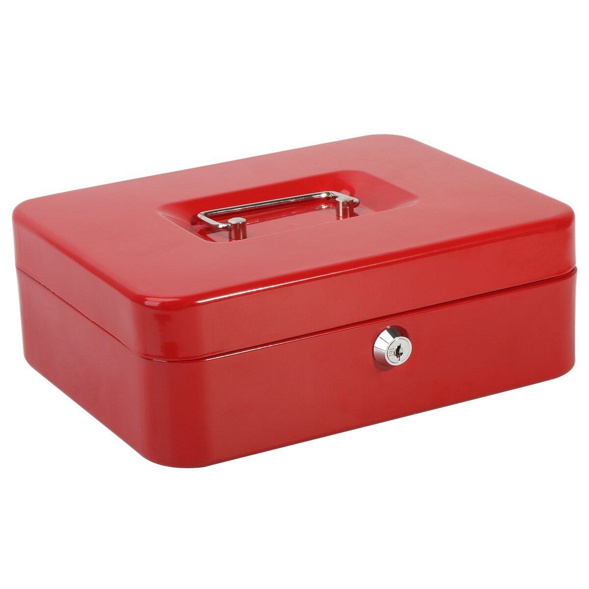 Jssmst(ジェスマット)手提金庫 キーロック式 金属製 25x20x9cm A5サイズ GB001bl-xl (赤)
