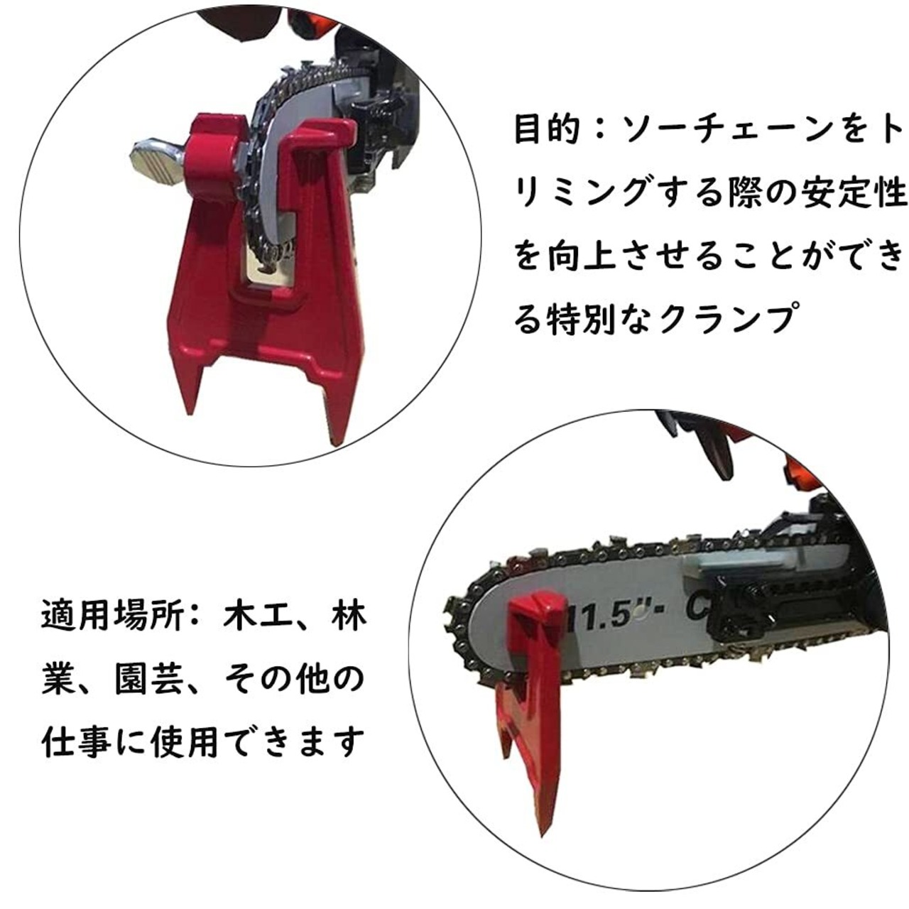 ・【商品セット内容】●チェーンソーカッティングセット:ファイルホルダー×1 /ファイルハンドル×1 /ラウンドファイル(各4.0mm / 4.8mm / 5.5mm)×3 /フラットファイル×1 /デプスゲージ×1 /収納袋×1●赤いチェーンソーガイドクランプ×1