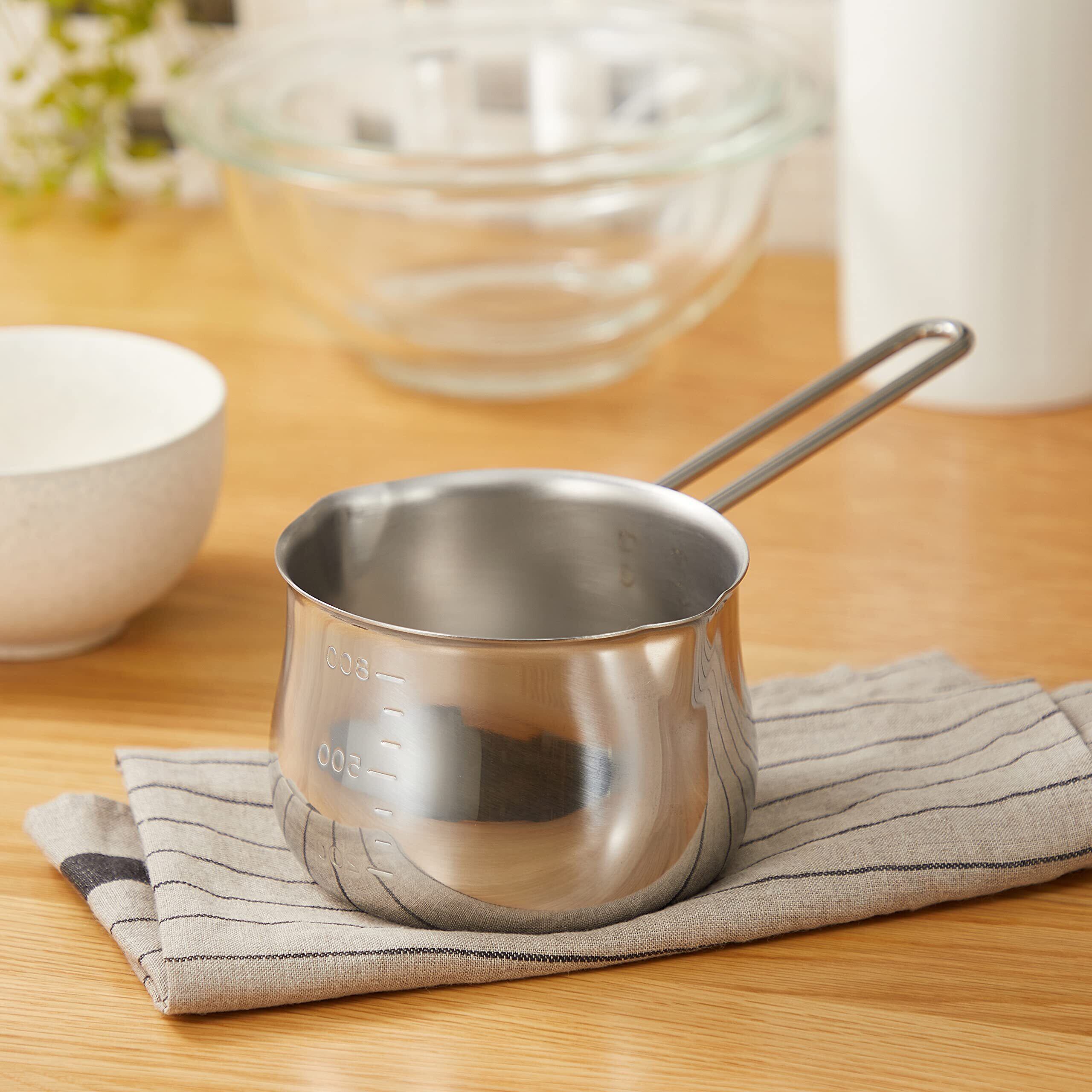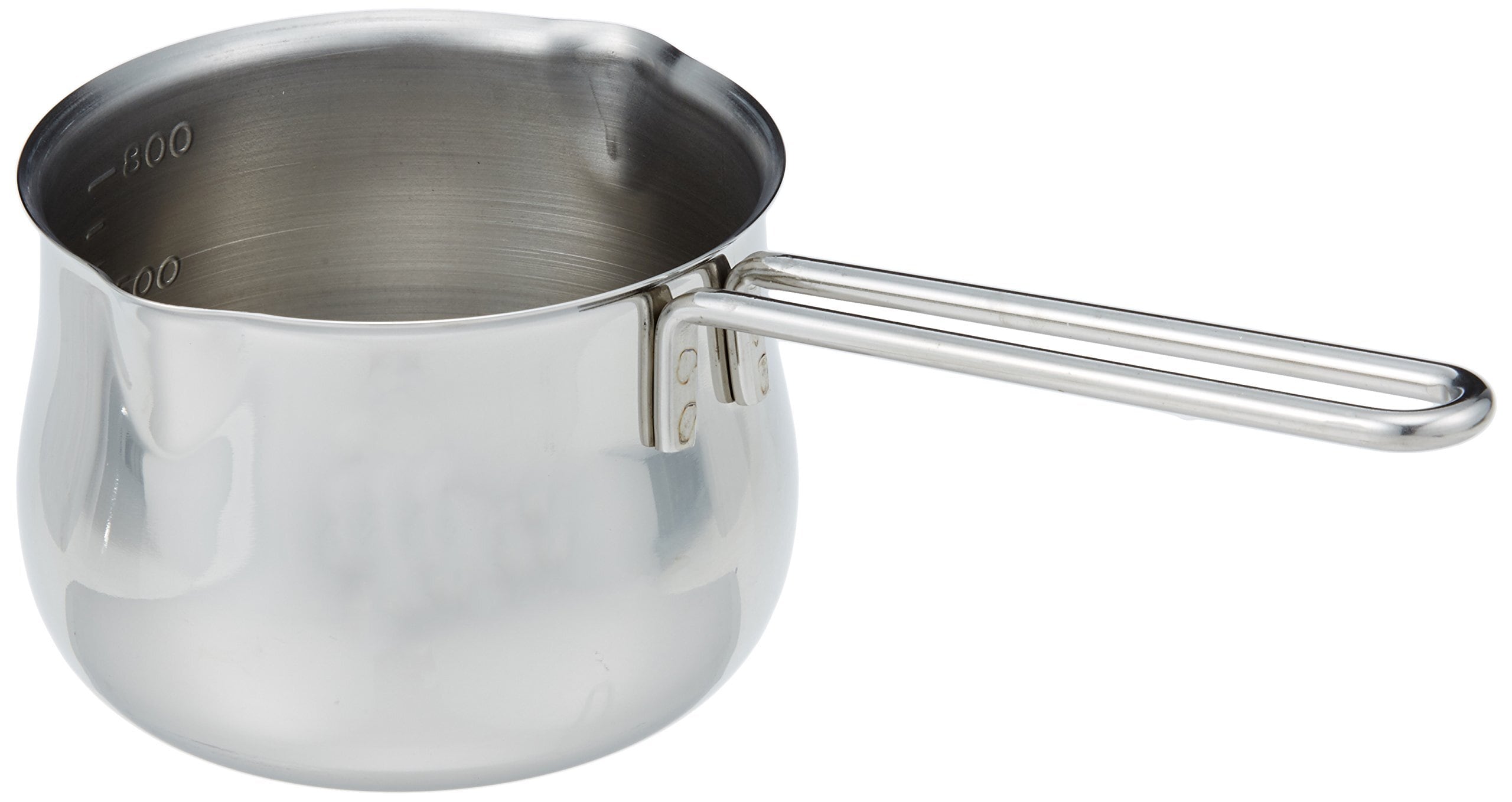 タケコシ 18-8 研磨仕上げ ミルクパン 800cc 目盛付 ワイヤーハンドル シルバー