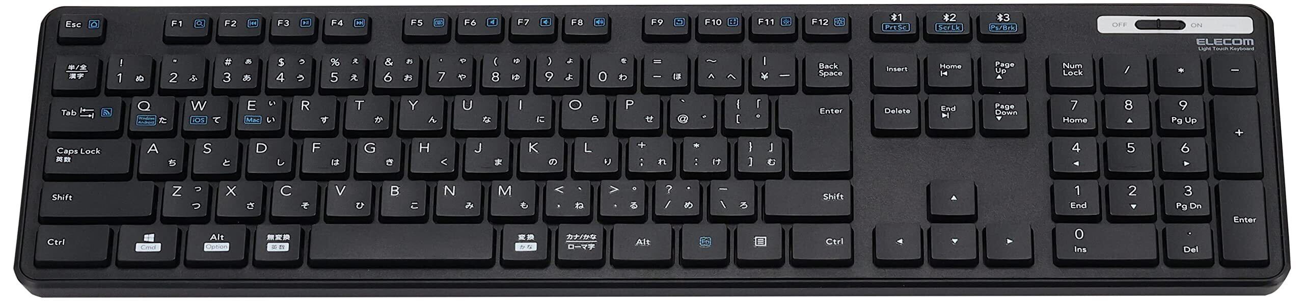 【在庫セール】エレコム ワイヤレスキーボード Bluetooth フルキーボード テンキー付 薄型 メンブレン 抗菌 最大3台マルチペアリング対応 iPad/Surface/テンキー付 ブラック TK-FBM120KBK/EC | ニコニコSHOP