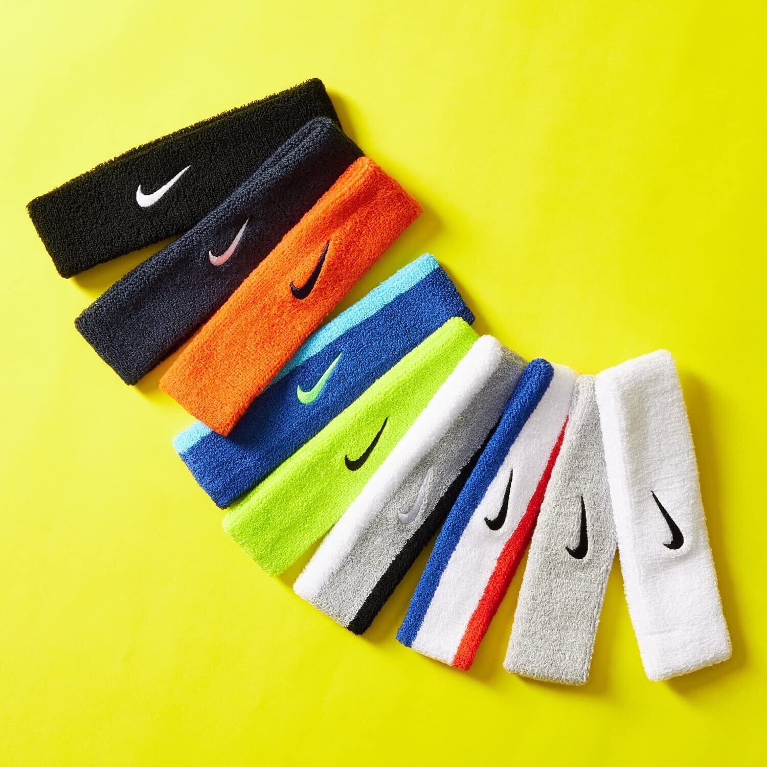 NIKEスウッシュ刺繍入りの定番デザインのヘッドバンド。