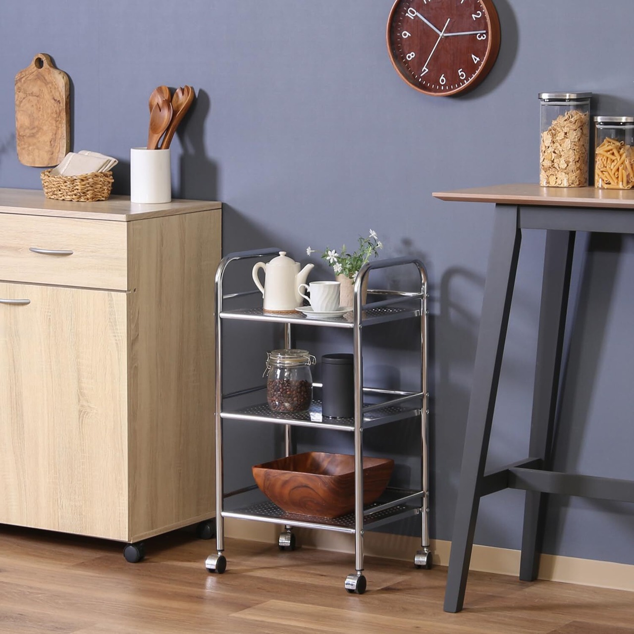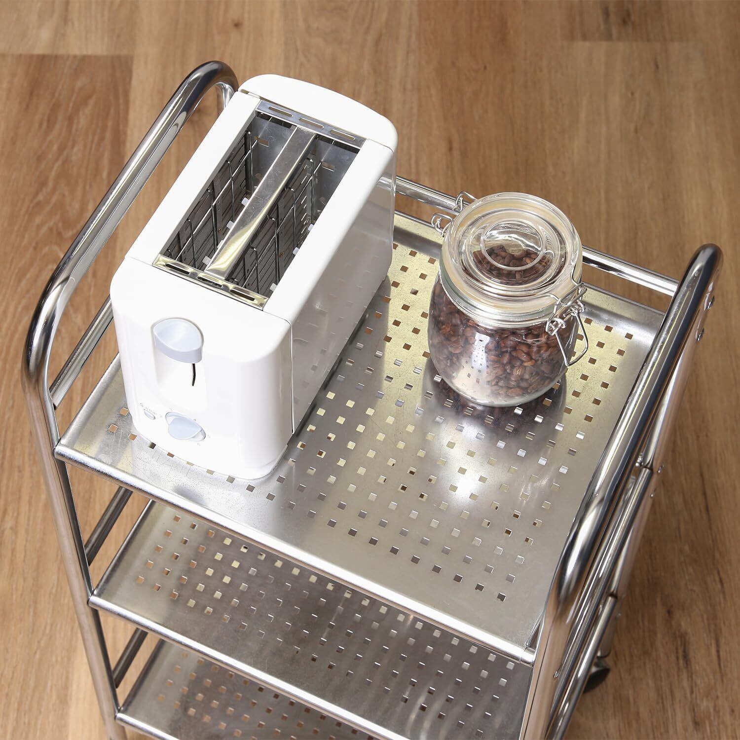 不二貿易 キッチンワゴン ラック 3段 幅40×奥行32×高さ74.5cm シルバー キッチン収納 スチール キャスター付き 組立商品 93397