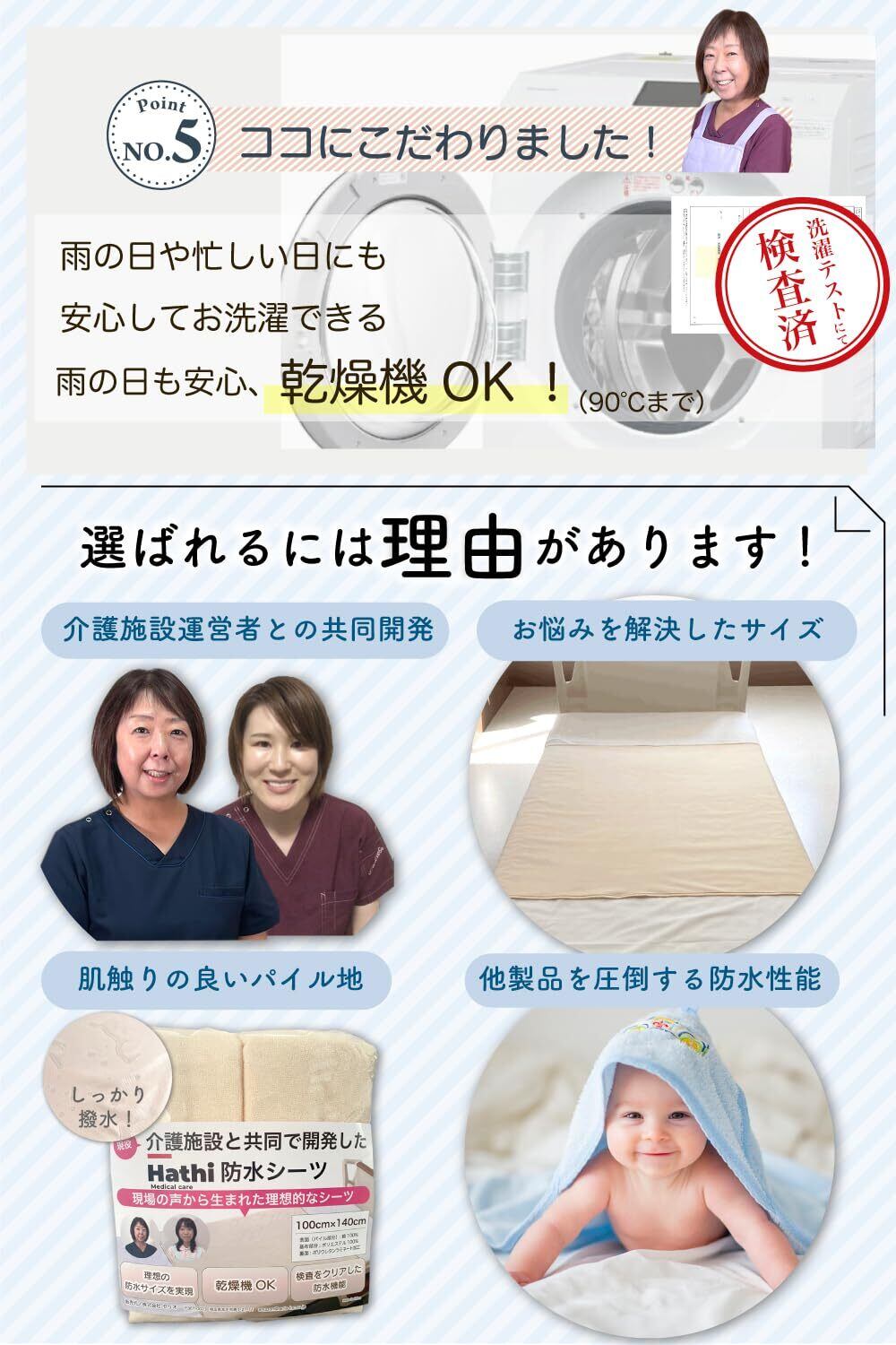 【理想の防水サイズを実現】 防水シーツを使用する際に、サイズが小さかったり大きすぎたりすることで負担が増えてしまうケース があります。Hathiの防水シーツは従来品と比べて使い勝手の良い100cmのサイズにすることで、 他の防水シーツ(シングル)やおねしょシーツと比べて扱いやすい介護用品をつくりました。