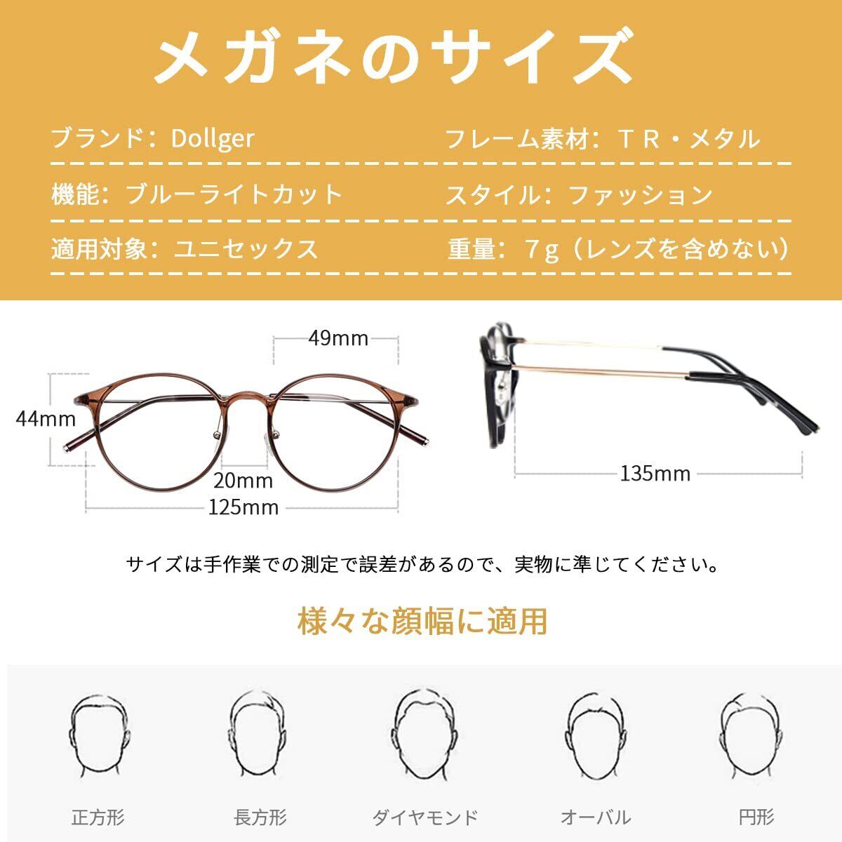 [Dollger] ブルーライトカット メガネ 丸い 度なし 8g超軽量 TR90 UVカット 紫外線 PC 伊達 透明レンズ ラウンド 小顔効果 おしゃれ ファッション レディース メンズ