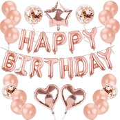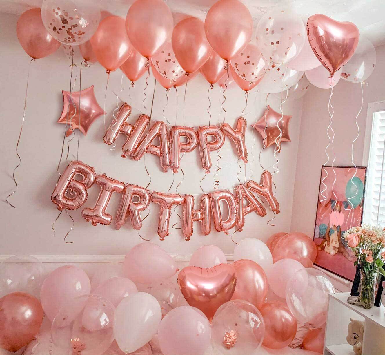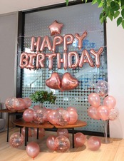 【ローズゴールド風船のテーマの】お誕生会の演出・サプライズにおすすめ!アルミ風船セットです、ハッピーバースデー!風船でお部屋を飾りつけ!大切なあの人のお誕生日を、ゴージャスにお祝いしちゃいましょう。