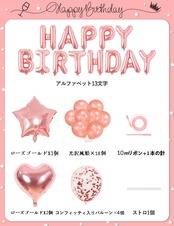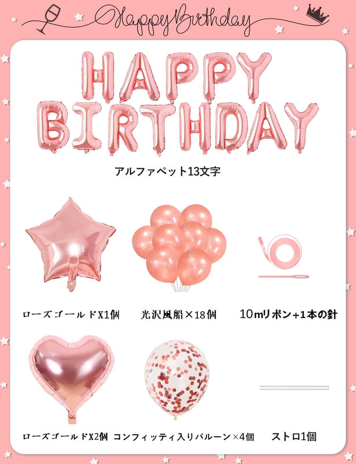 【テーマパーティーセットには以下が含まれます】①HAPPY BIRTHDAYハッピーバースデー*1セット(約40cm)②ハートローズ風船×2枚(约45×45cm)③ローズスター×1枚(约45×45cm)④光沢風船X18個(約25cm )⑤コンフィッティ入りバルーン×4(約30cm ) ⑥ストロー ×1個⑦10mリボン⑧ 1本の針。