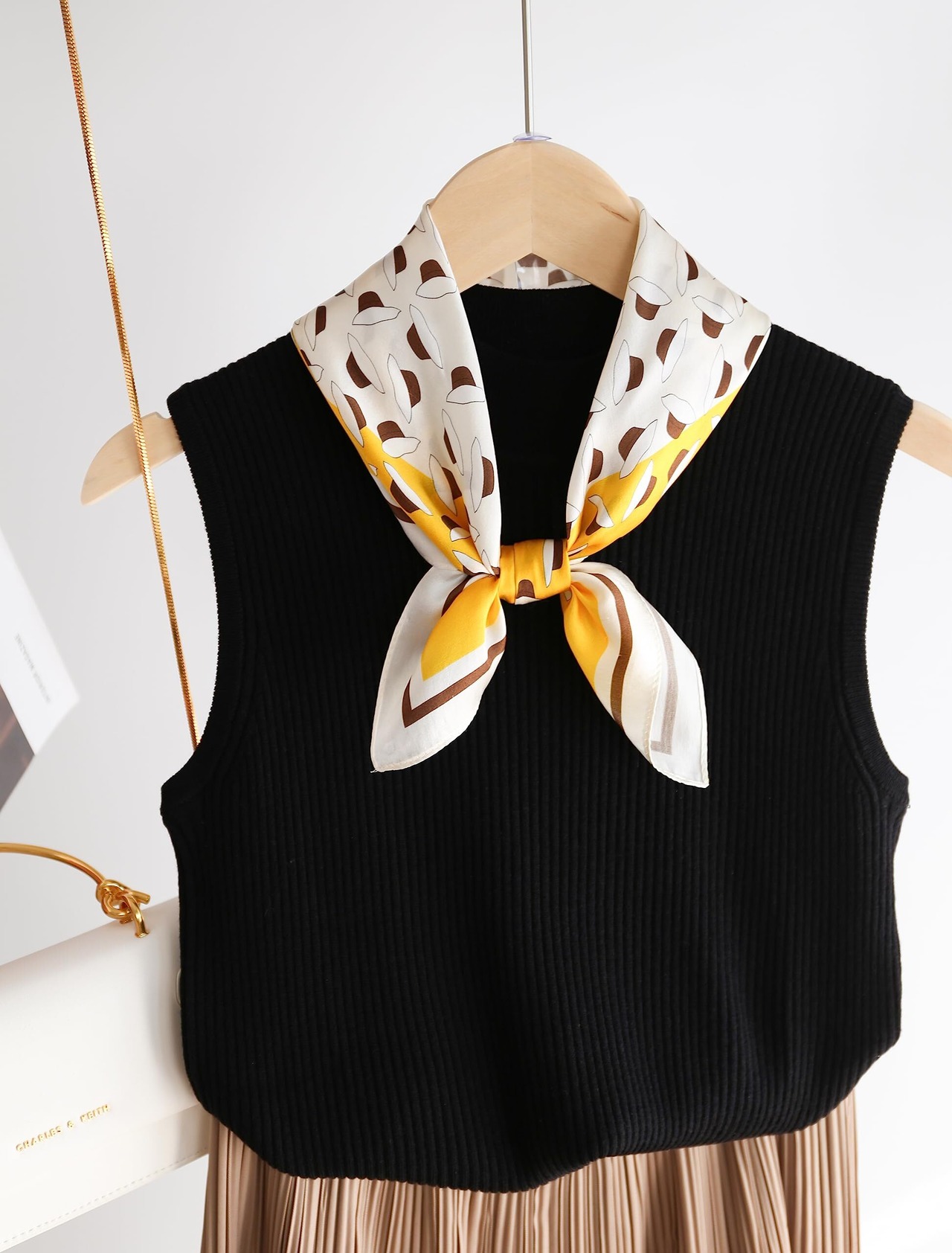 コーディネートにお洒落な印象をプラスしてくれるスカーフ。 首や髪の毛に巻くだけでなく、シンプルなバッグにつけるのもおすすめです.
