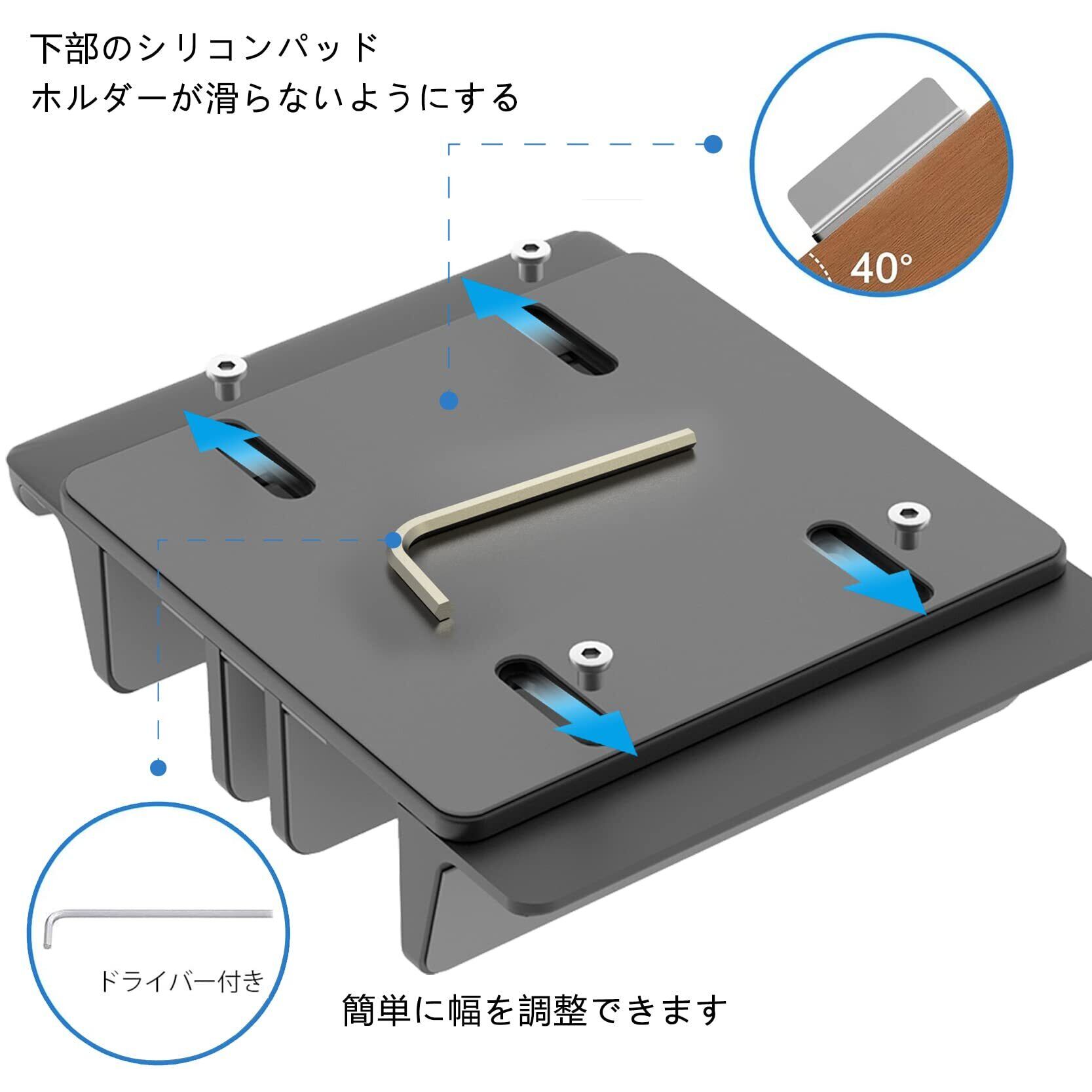 【14cm〜39cm幅調整で全サイズ対応】 六角レンチで簡単に幅を調節可能。超薄型ノートからゲーミングPCまで、縦置き・横置きで安定収納。競合製品より広い調整範囲(14-39cm)で多様なデバイスに対応13。
