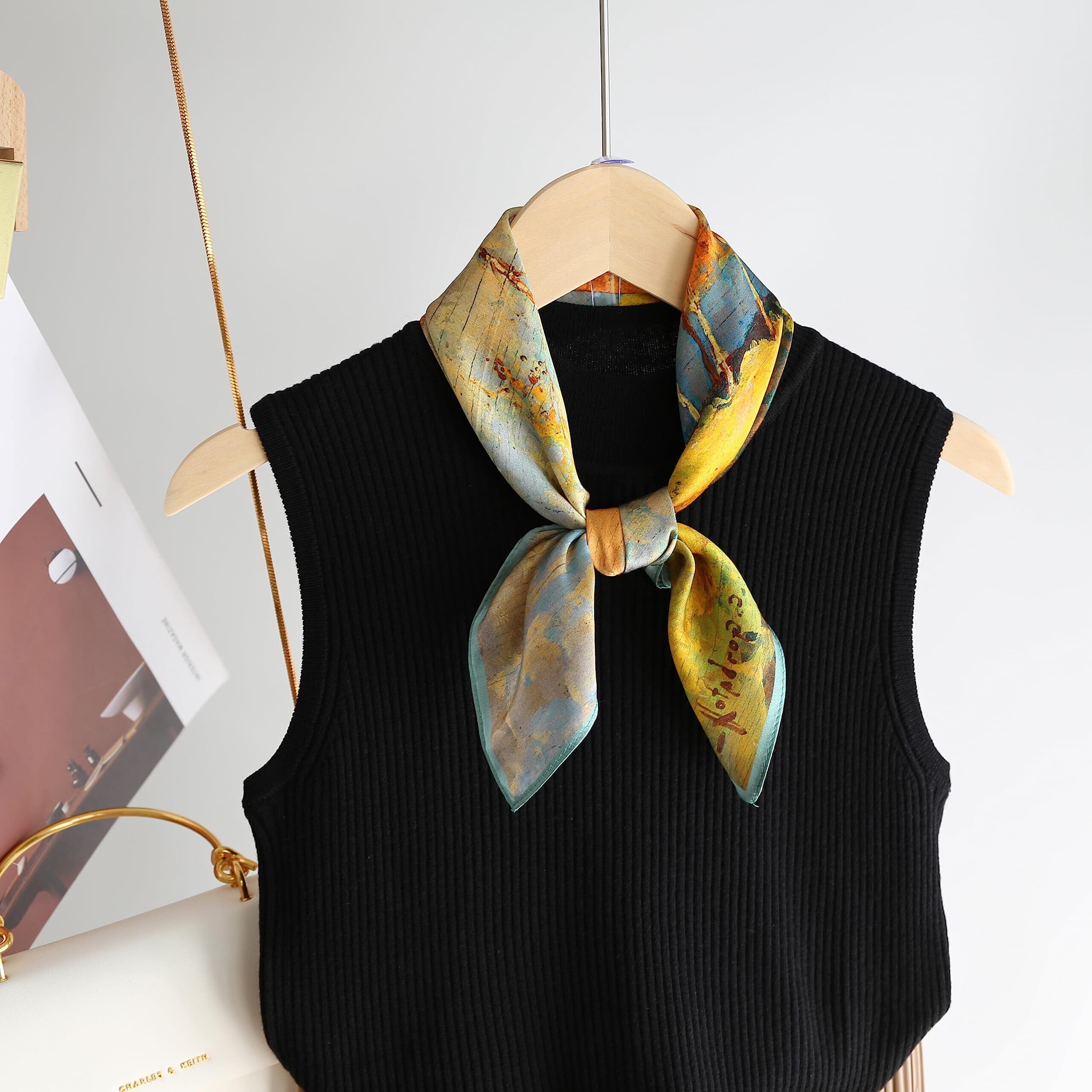 [BRMM MIA] 100% シルク 53cm 正方形レディース スカーフ 通勤 トオフィススカーフ ハンカチ スカーフシルク バレンタインギフト