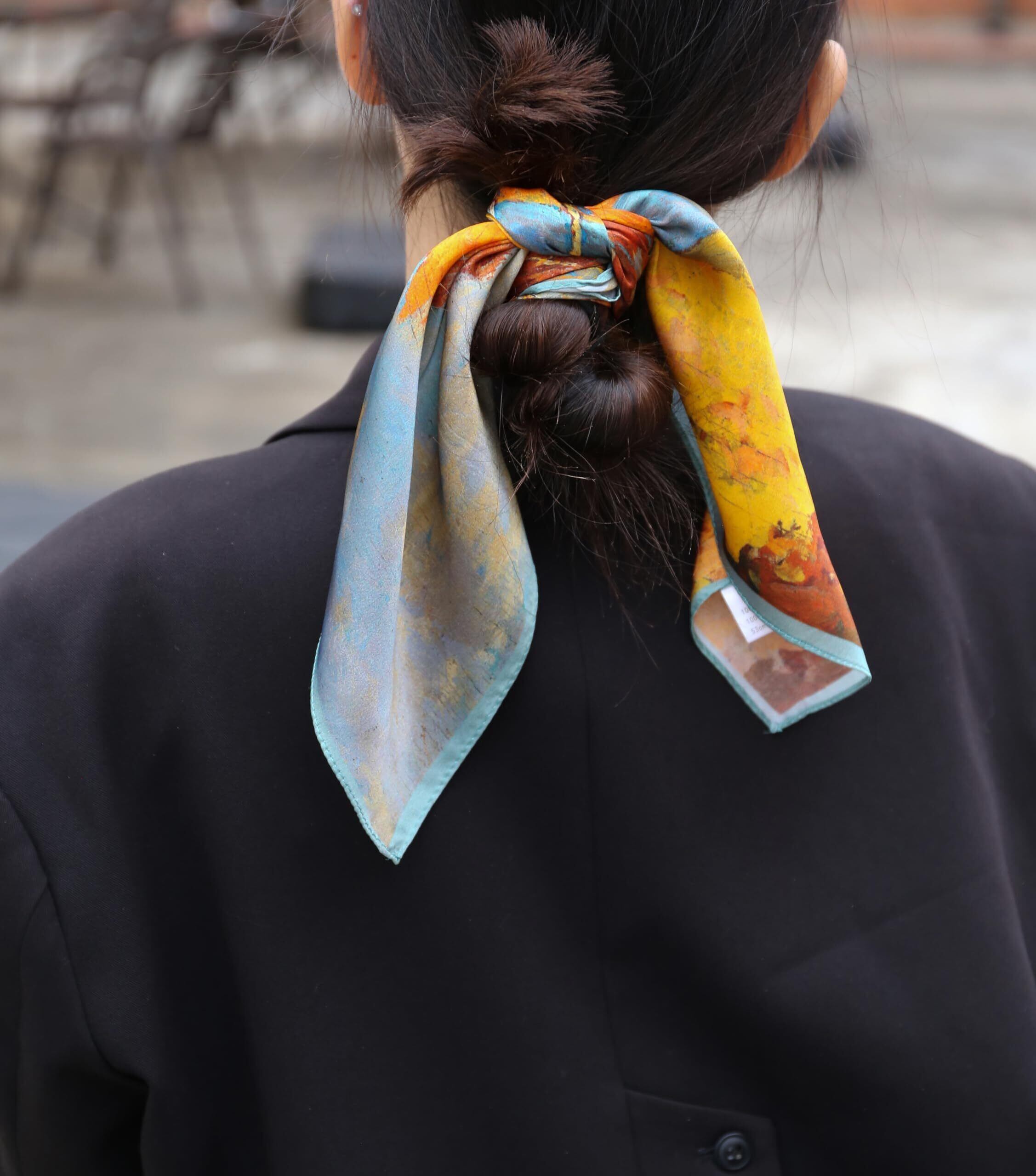 コーディネートにお洒落な印象をプラスしてくれるスカーフ。 首や髪の毛に巻くだけでなく、シンプルなバッグにつけるのもおすすめです.