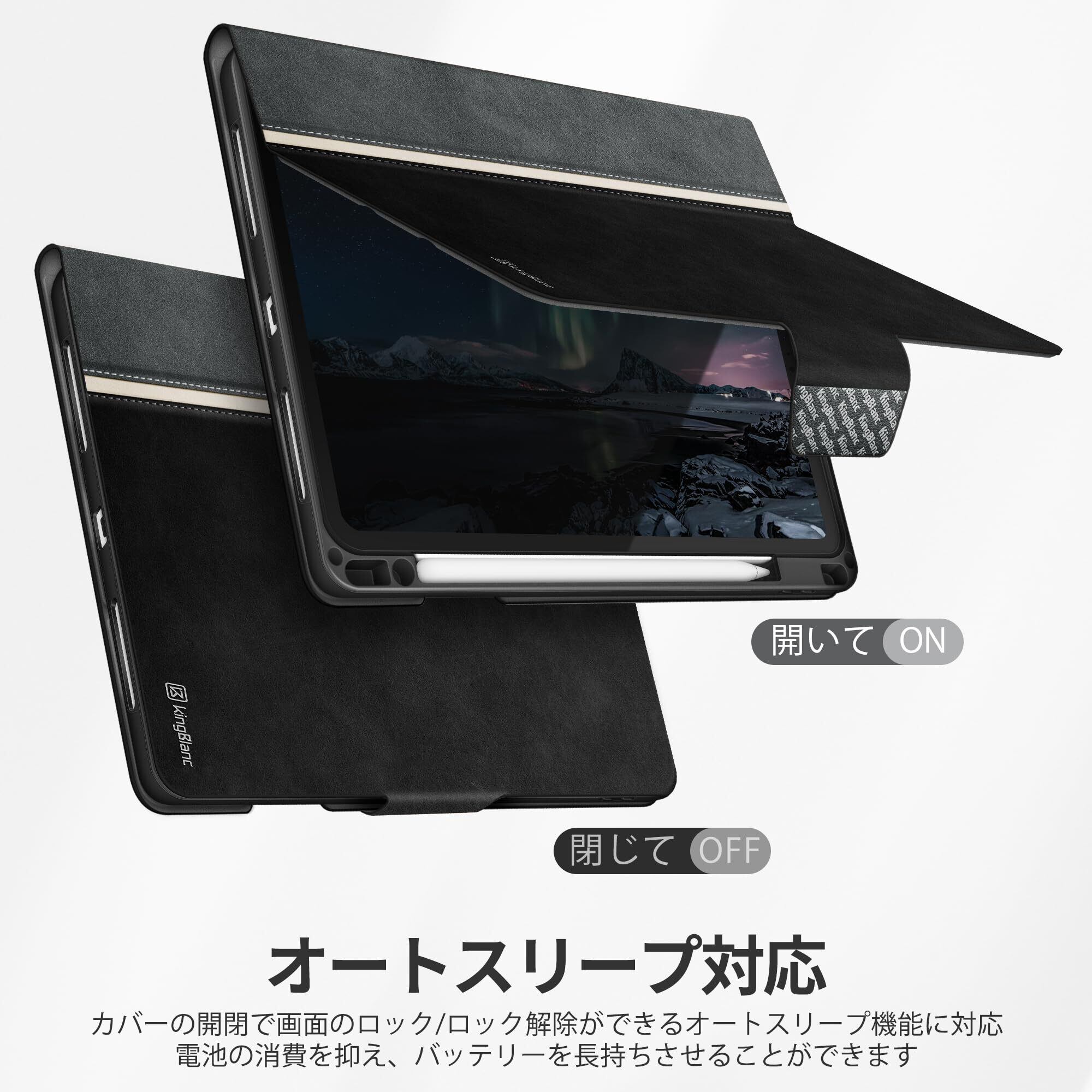 【数量限定】KingBlanc iPad Pro 11インチ ケース (M4) 2024 第5世代 専用 手帳型 ペン収納可 Apple Pencil Pro/USB-C対応 オートスリープ ペンシルホルダー付き 高級PUレザー製 絵描き角度 全面保護 耐衝撃 傷つけ防止 頑丈 カバー, ブラック | ニコニコSHOP