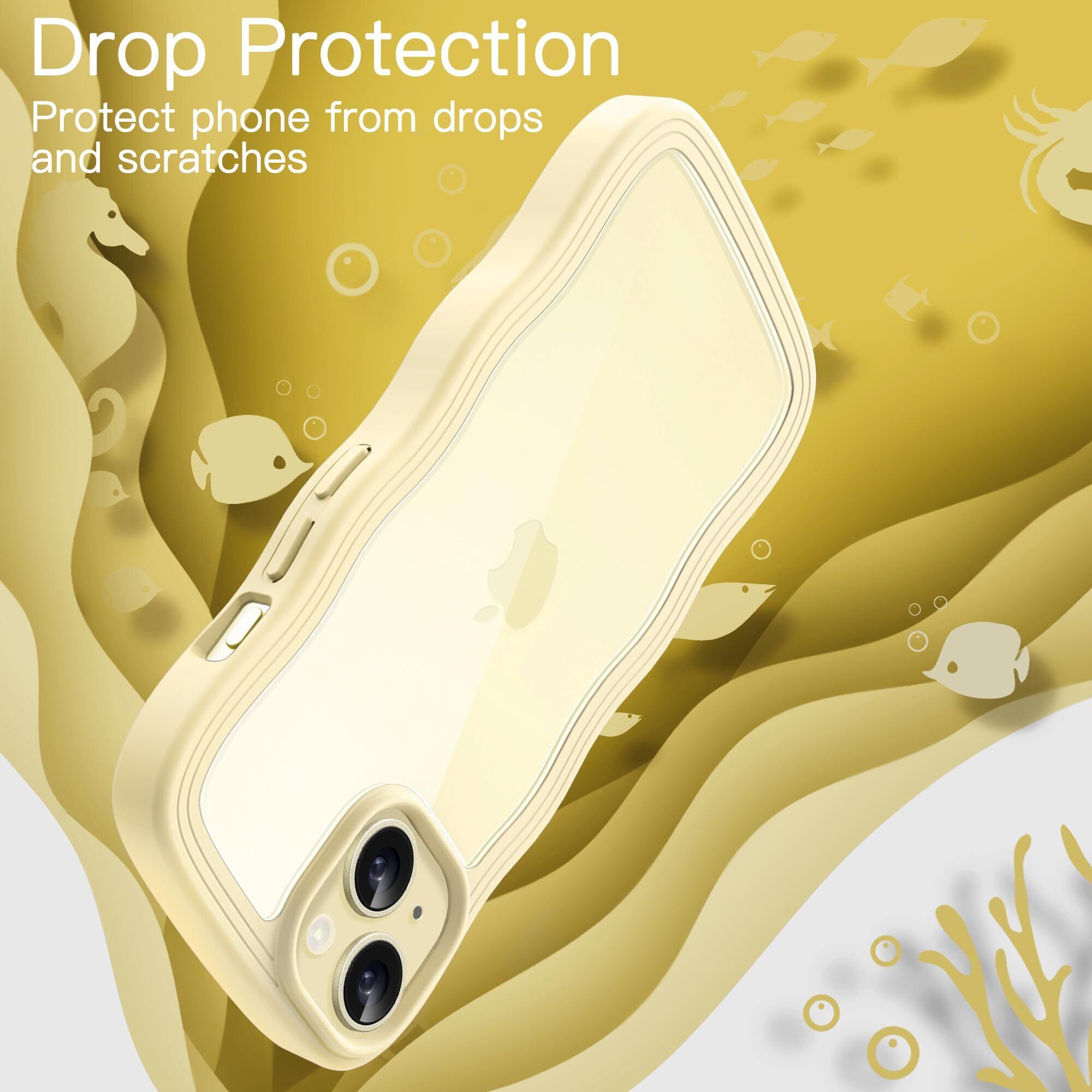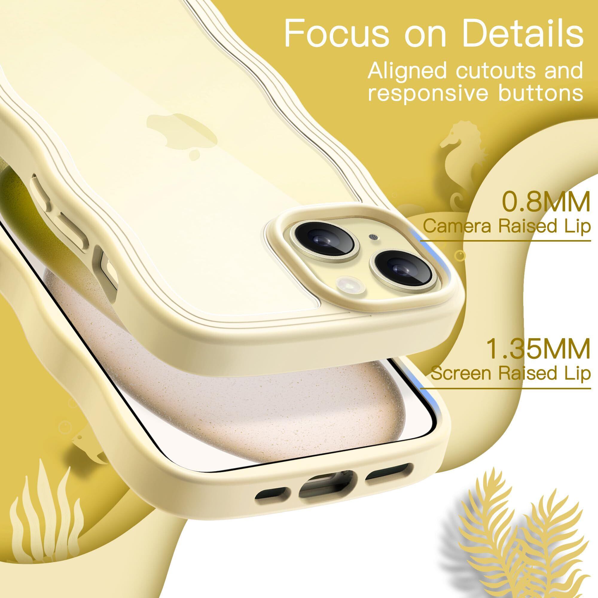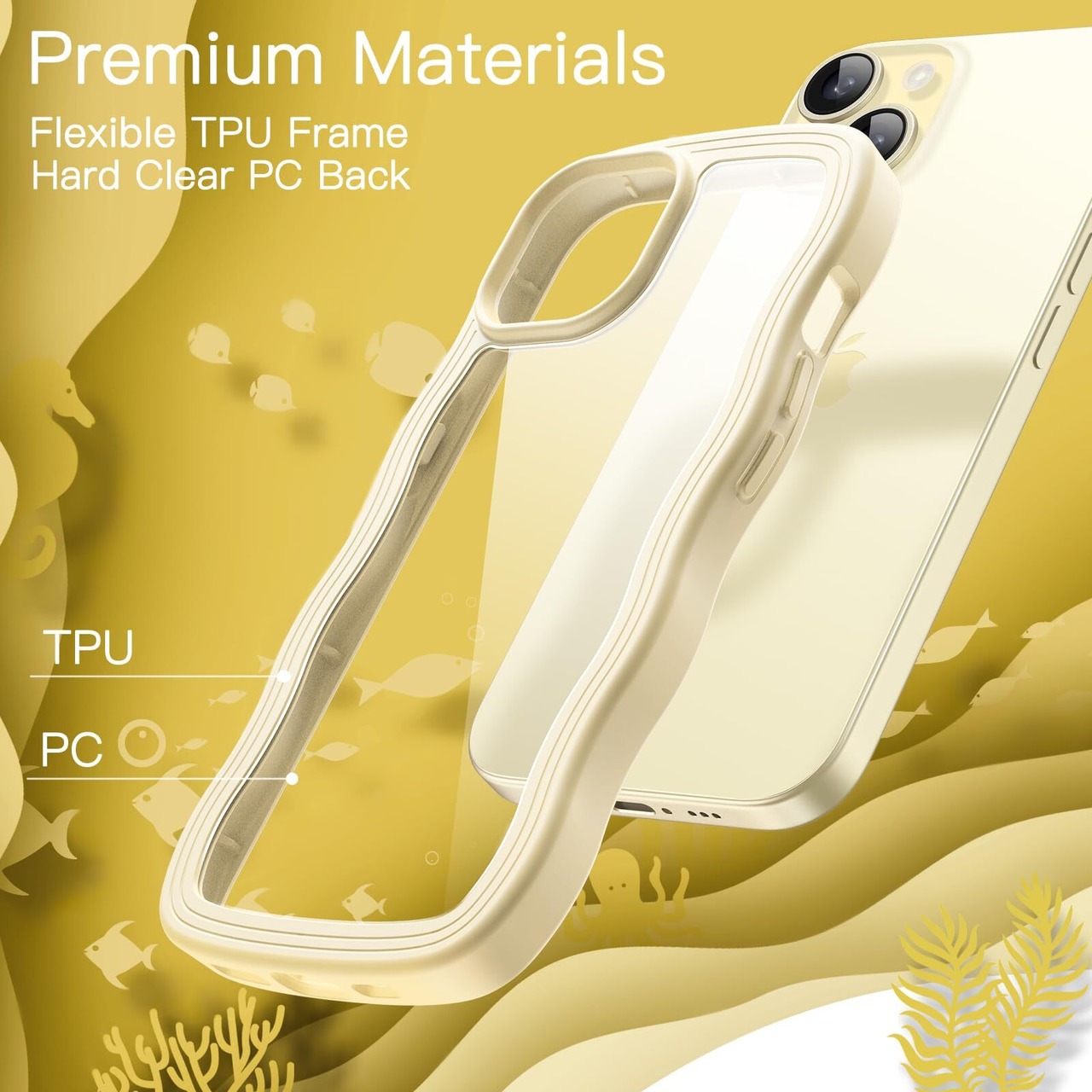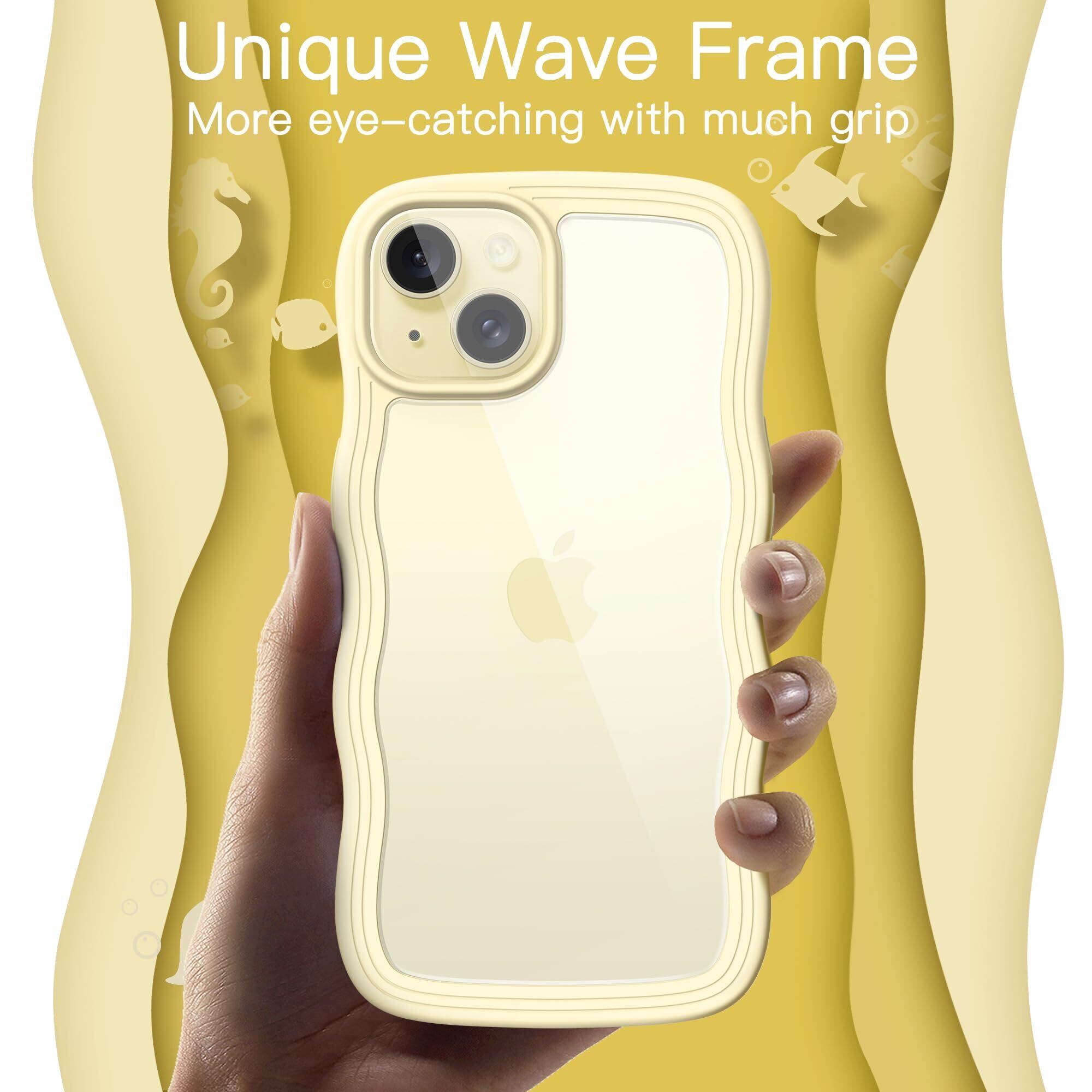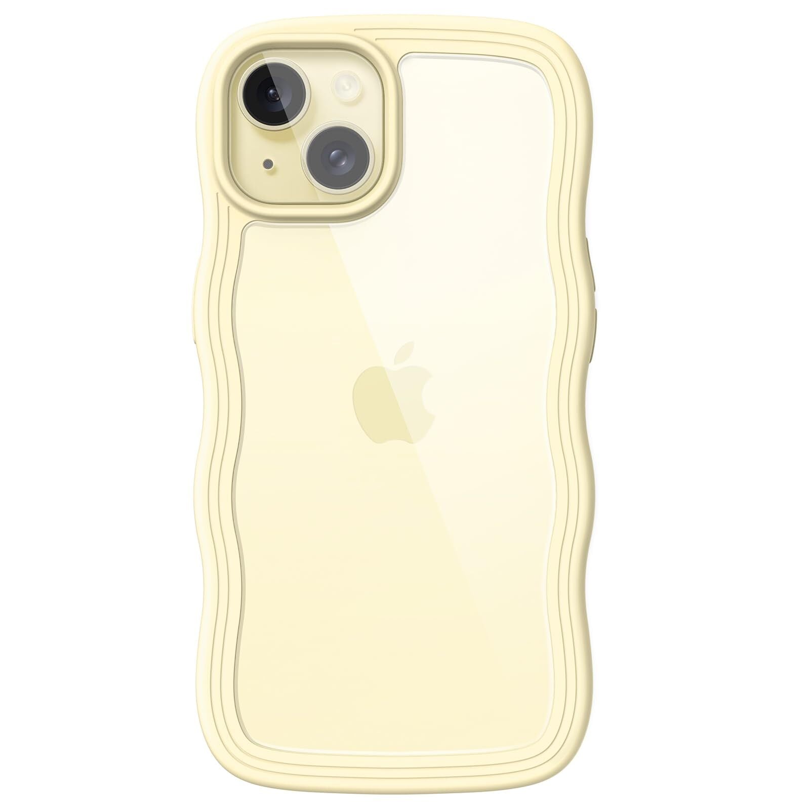 JETech iPhone 15 6.1インチ用 かわいい ケース 波状フレーム うねうね 耐衝撃 スマホカバー 女性用 女子向け クリア ハードPCバック (イエロー)