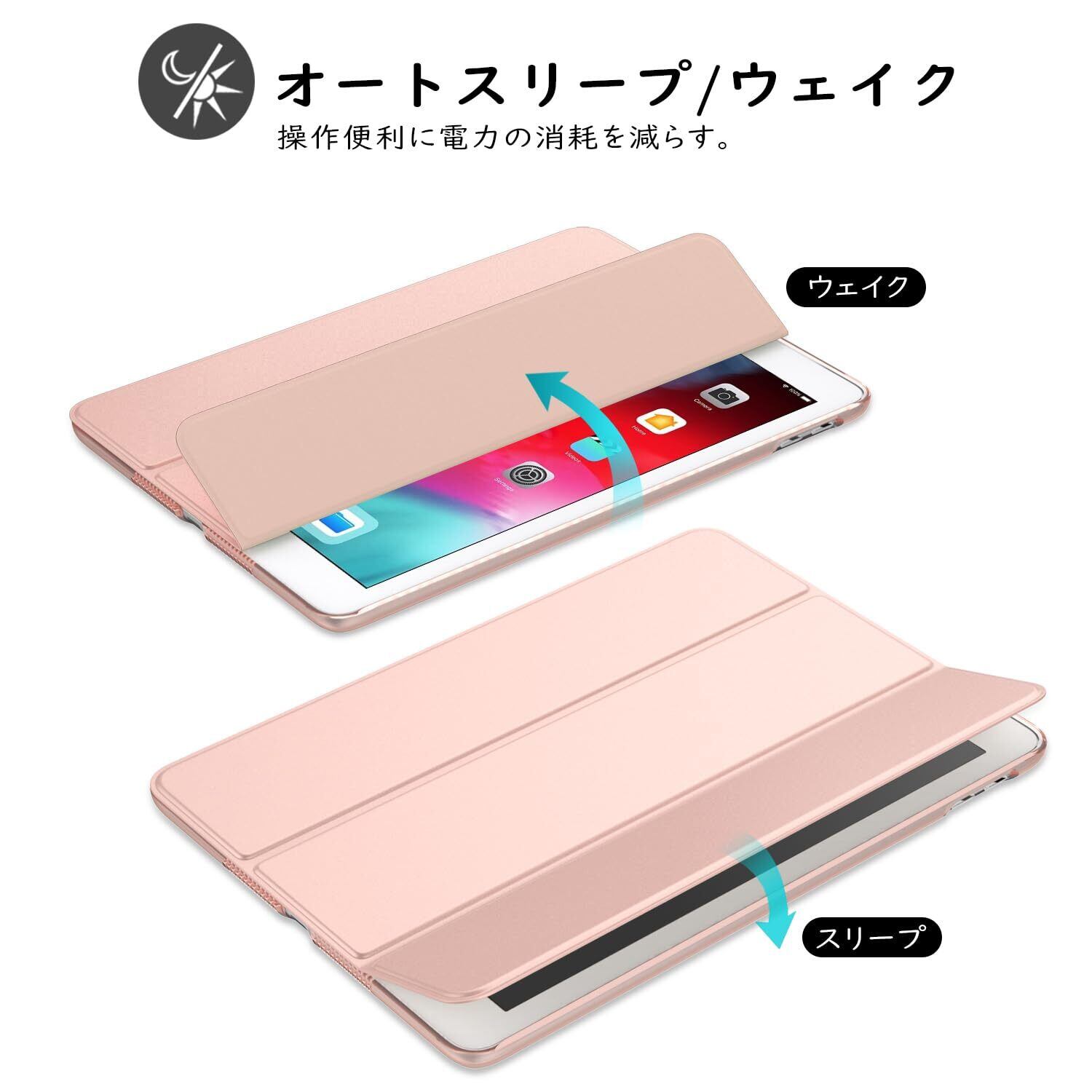 iPad 9.7インチ ケース TiMOVO iPad 第6世代/第5世代 ケース A1822/A1823/A1893/A1954 2018/2017モデル iPad 9.7 保護カバー PUレザー 三つ折りスタンドケース オートスリープ機能付き マグネット式開閉 耐久 超薄型 耐衝撃 軽量 落下防止 精密設計 着脱簡単 背面半透明 ローズゴールド