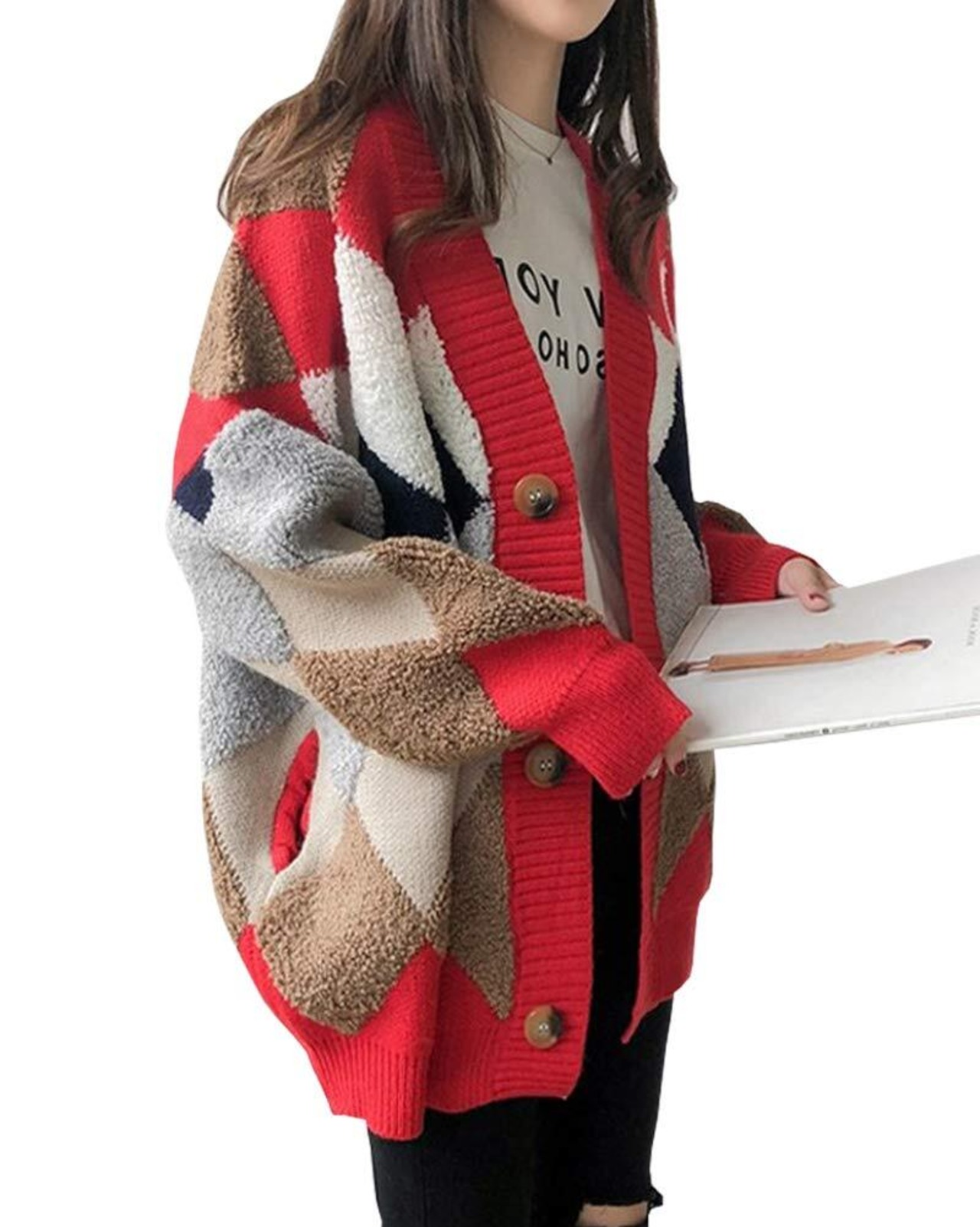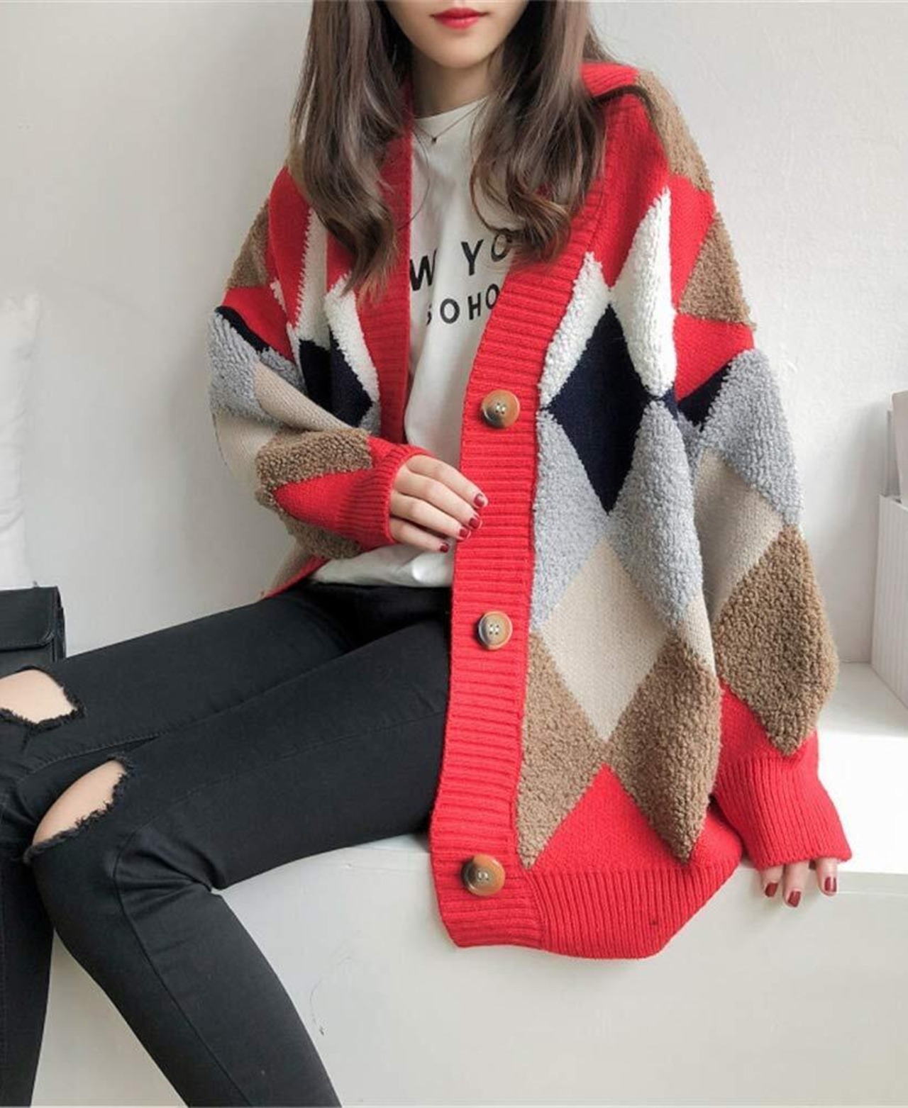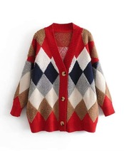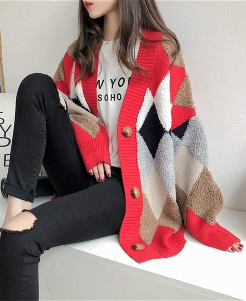 ASARANS カーディガン レディース ニット アウター 羽織り ボア トップス アーガイル Vネック 秋冬 フリーサイズ