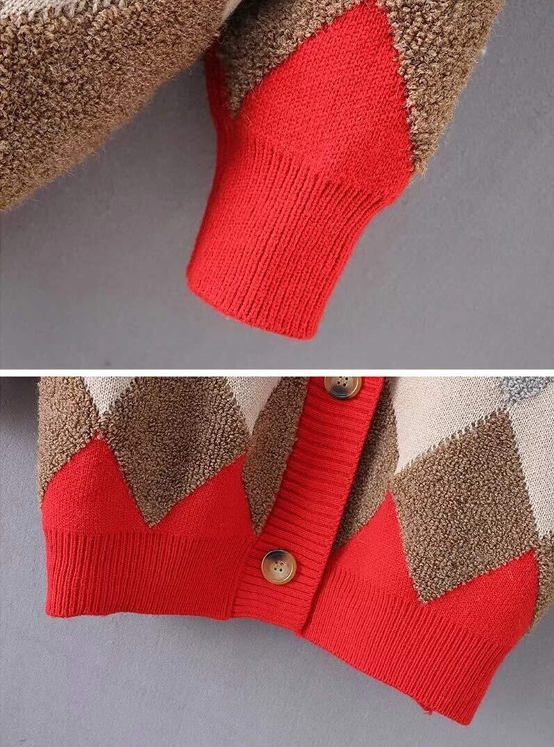 【アーガイル柄デザイン】もこもこのアーガイル柄デザインが可愛らしくポップなイメージを与えてくれます。ゆったりフォルムシルエットも体型カバー。