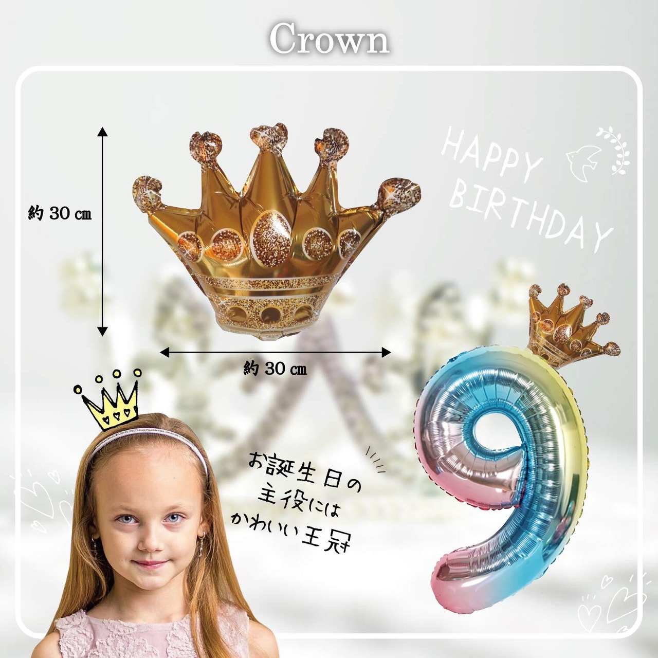 【王冠バルーン付き】人気の王冠バルーン付きで、数字バルーンに貼って飾るとワンランク上のデコレーションに。