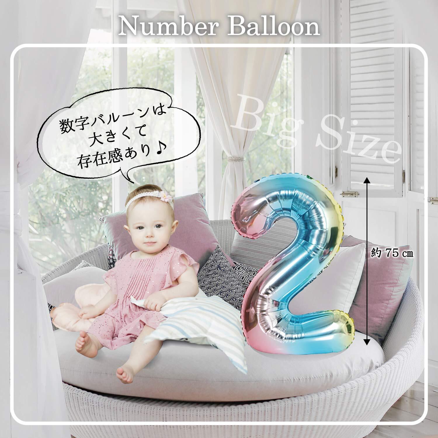【75cmの数字バルーン】75センチの大きなグラデーションの数字はこれだけでもかわいいユニコーンカラーの数字バルーンセットです。