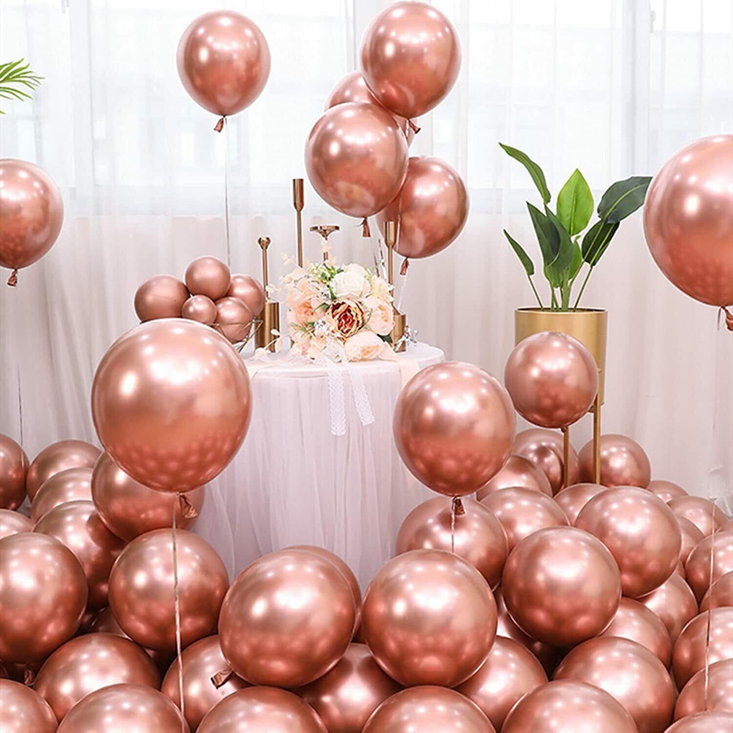 EXGOX バルーン 風船 100個入り 金属風船 飾り 装飾 極厚 丸型 誕生日会 バースデー パーティー 結婚式 店舗装飾 お祝い イベント 25cm (ローズゴールド)