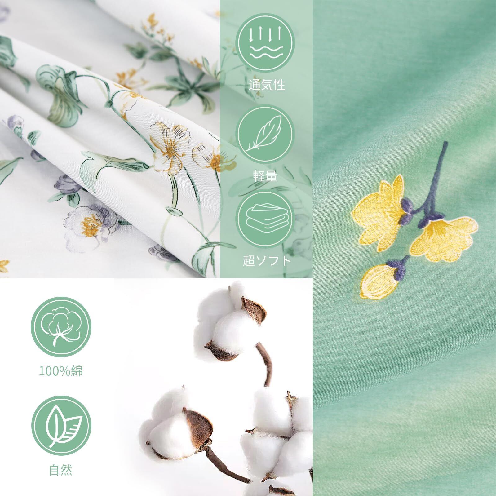 【新春セール】KEAYOO 掛け布団カバー 綿100% 単品売り 掛けカバー シングル 優しい肌触り 柔らかい 防臭 通気性 抗菌 四季通用 緑 シングル
