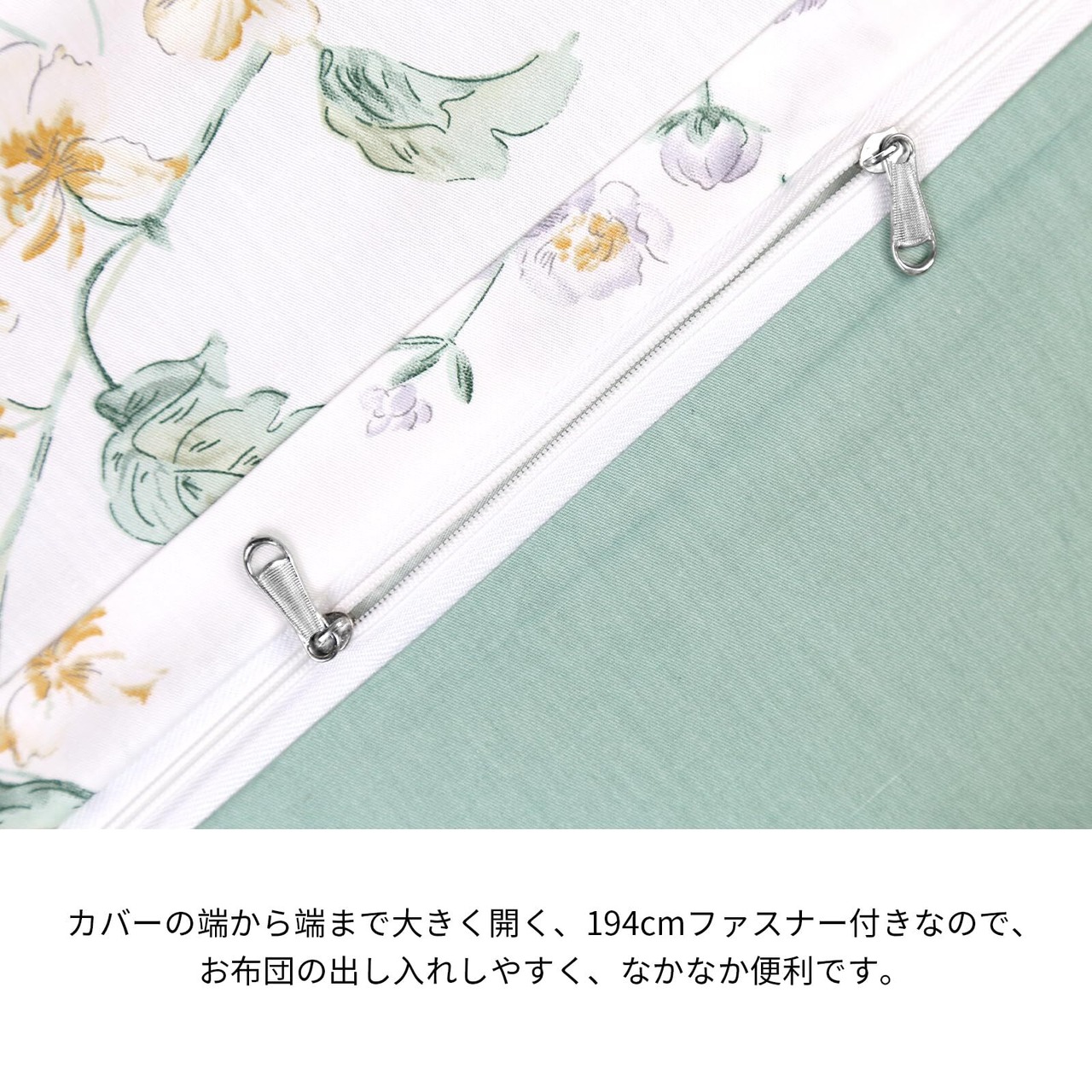 【仕様】掛けふとんカバー:片側194cmファスナー付き、8ヶ所ヒモ付き