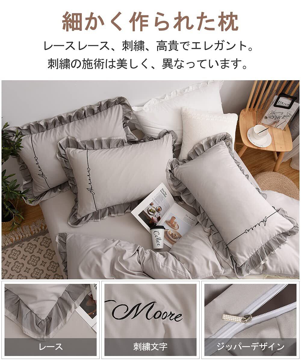 【特価商品】SowooHome 布団カバー シーツ 刺繍 蓮の葉 寝具カバーセット 掛け布団カバー ボックスシーツ 枕カバー ベッド用 布団用 洗い替え速乾タイプ(シルバーグレー, シングル・3点セット) | ニコニコSHOP