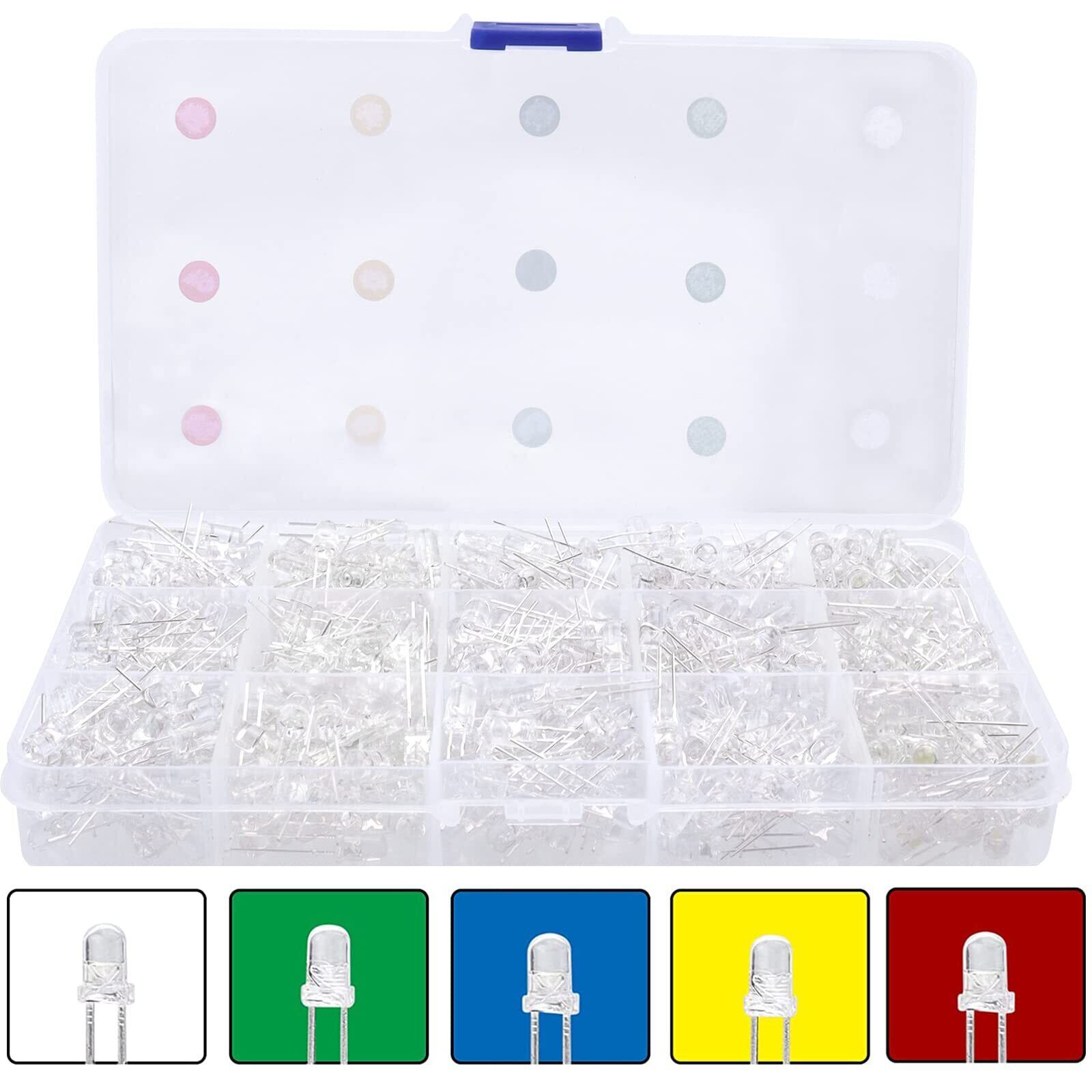 Bestgle 発光ダイオード5mm 500ピース透明LEDセットF5 LED電子部品バッグ LED電球5mm LEDダイオードライトLED ダイオード 高輝度 円型頭部 5色ダイオードセット 白黄赤緑青各100個