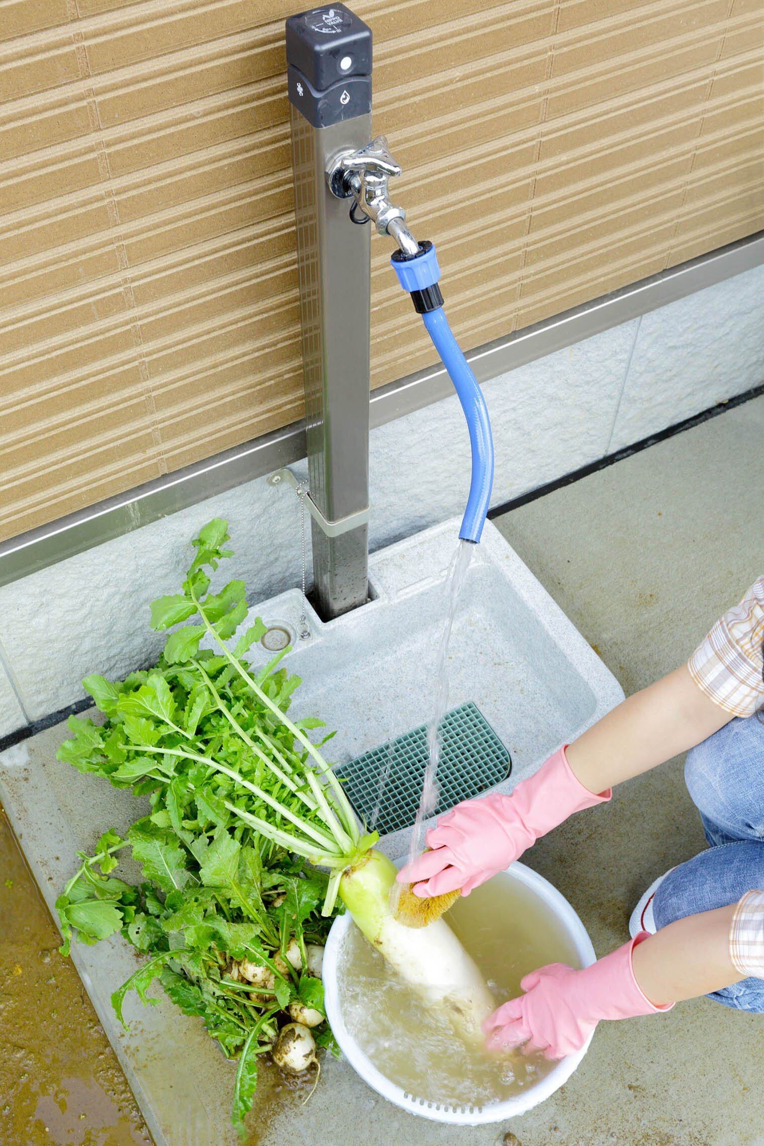 【形状自在ホース】ホース内にアルミ棒が入っており、形状を自由に変えて保持することができます。道具の洗浄をするとき等に、両手が使えて便利です。