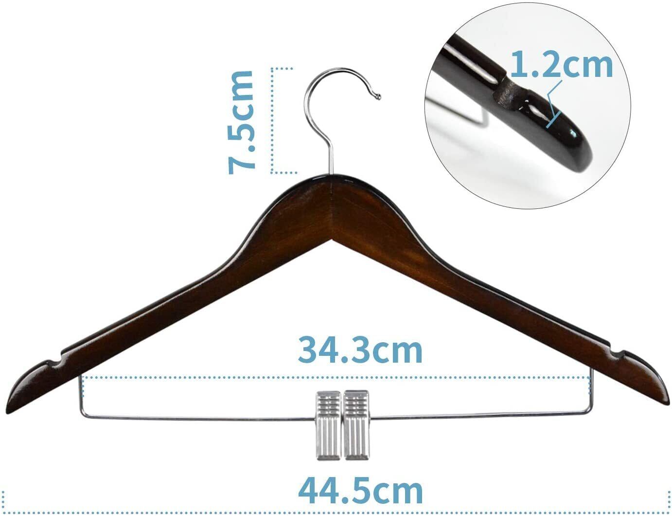 耐久性】ハンガー 厳選された高品質の無垢材、丈夫な木材、錆にくい、あらゆるタイプの衣類に適した、木材とステンレス材質を完璧に組み合わせるズボンハンガーです。シャツとズボンをしっかりはさめます。 サイズ】10本セット、幅約L 44.5cm、肩厚約W1.2cm。木製クリップ付きハンガーは良質な木材を使用し、おしゃれ且つ優雅、軽くてシンプルなので、クローゼット空間を節約できます。 便利性】クリップ ハンガー 二つのクリップが左右に動けるし、間隔を自由に調節できます。クリップ付き、フックは360度回転でき、ブラウン木製ハンガーです。 多機能】シャツとズボンを収納できます。多機能 ハンガー ズボン用だけではなく、普段に衣類をかけることにも適します!クリップ付きハンガーだから、他の小物を掛けるのにも使えます。 U字型の滑り止め溝】木製スーツハンガーは肩部分の凹みでキャミソールの肩紐や、スカートのループを引っ掛ける事ができ、服は滑りにくいです。