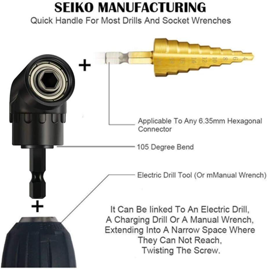 【 L型ソケット紹介 】 L型になっている工具専用変換アダプターの事です。105度のデザインで、角度変更が行えるので電動工具の使える幅が広がる。コードレスドライバーのパワーを拡張します(100 in / lbs)、トルク、400RPM。その歯車は3つの耐久ボールベアリングを備えたダイカストに取り付けられています。360度の調節可能な親指のフランジ。強力な巨大な磁気ソケットは、標準的な六角穴あけとドライブビットを持ち、落下を防ぎます。 1/4インチ六角ドライブシャフトはクイックチェンジ互換で、ほとんどのパワードリル、手動レンチ、ドライバーチャックに適合し、磁気1/4インチ六角ソケットは標準のドリルとドライバービットを受け入れ、保持します。壁際や、狭い場所にネジを締付ける際に必要な工具です。