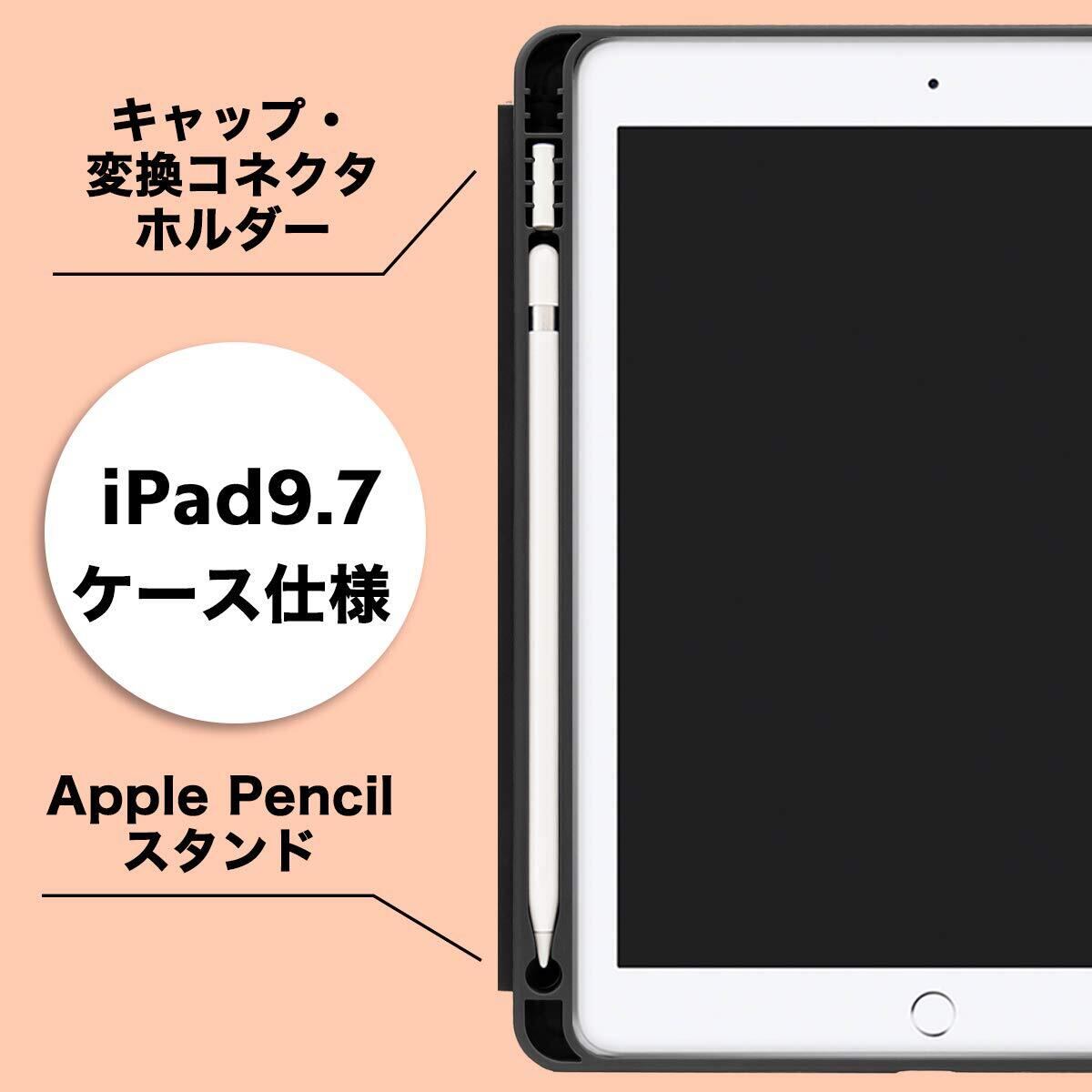 iPad 9.7 インチ 2018年 2017年 モデル 第6世代 第5世代 対応 ペンシルホルダー 一体型 耐衝撃 ソフト TPU スマートカバー PU レザー ケース 【MS factory(R) 正規品】
