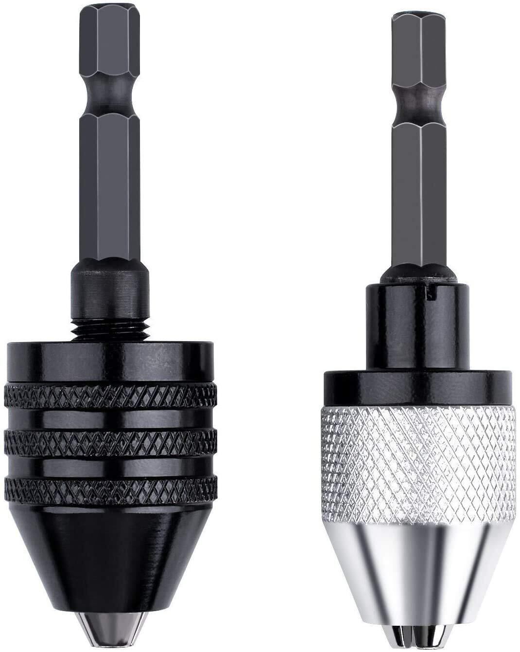TAORAYO キーレスドリルチャック 2本組 ドリルチャックアダプター キーレス六角軸ドリルチャック キイレスタイプ 六角シャンク クイックチェンジドリルチャック インパクトドライバー対応型 電動ドライバー用 キィレスドリルチャック アダプター ハンマードリル用 全金属タイプドリルチャック キーレスドリルチャックアダプターセット 鉄工錐用 インパクトドライバー用 6.35mm軸 電動工具アクセサリー(0.3~6.5mm,0.3~6.5mm)