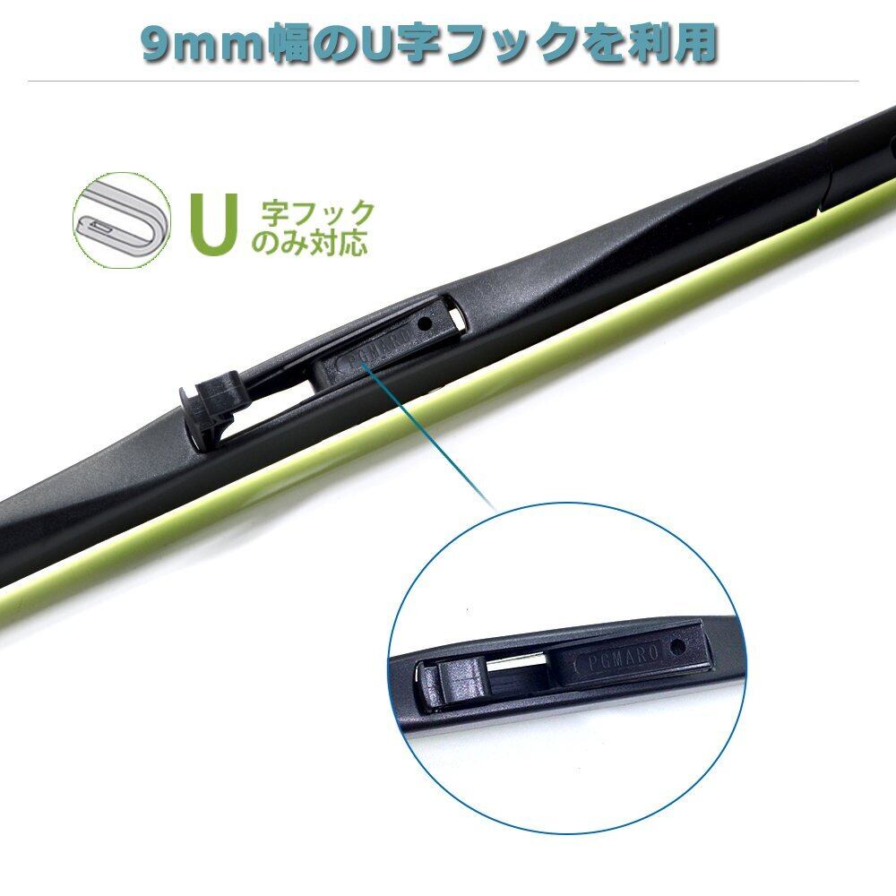 PGMARO 新型 三段骨式 カー エアロ ワイパーブレード NV350キャラバン バン E26系 標準幅ボディ/クラウンマジェスタ JZS,UZS17#/クルーガー ハイブリッド車含む ACU,MCU20,25,MHU28W/フォレスター SG5,9/クロスロード RT1,2,3,4 など対応 エアロ ワイパー強力撥水コート Uクリップ 550mm-475mm 2本/セツト