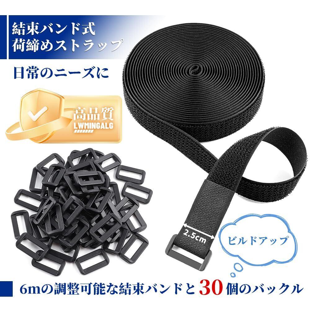 【2022最新】LWMINGALG マジック結束バンド 長さ6m*幅2.5cm 30個バックル付き 面ファスナー固定ベルト 耐熱 自由にカット 繰り返し 荷物梱包 収納用テープ DIY用 業務用 家庭用 工業用(2cmx6m 黒色) | ニコニコSHOP