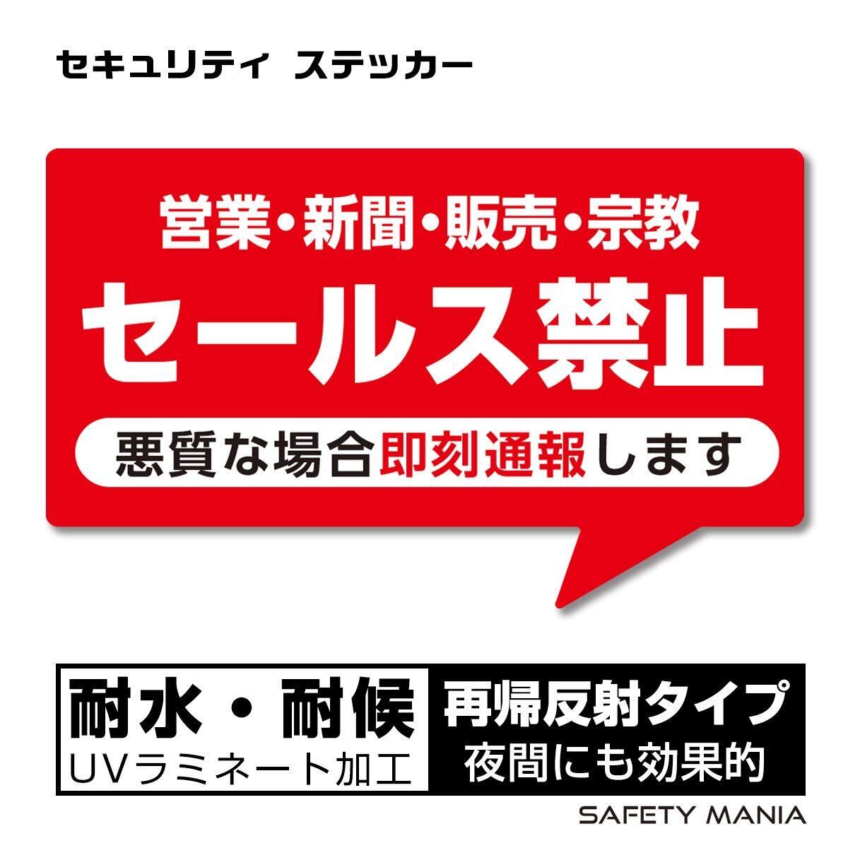 セールス禁止 営業 新聞 訪問販売 宗教 すべてお断り 反射ステッカー シール 悪質な場合 即刻通報 耐候 防水 10cmX6cm (1枚, セールス禁止)