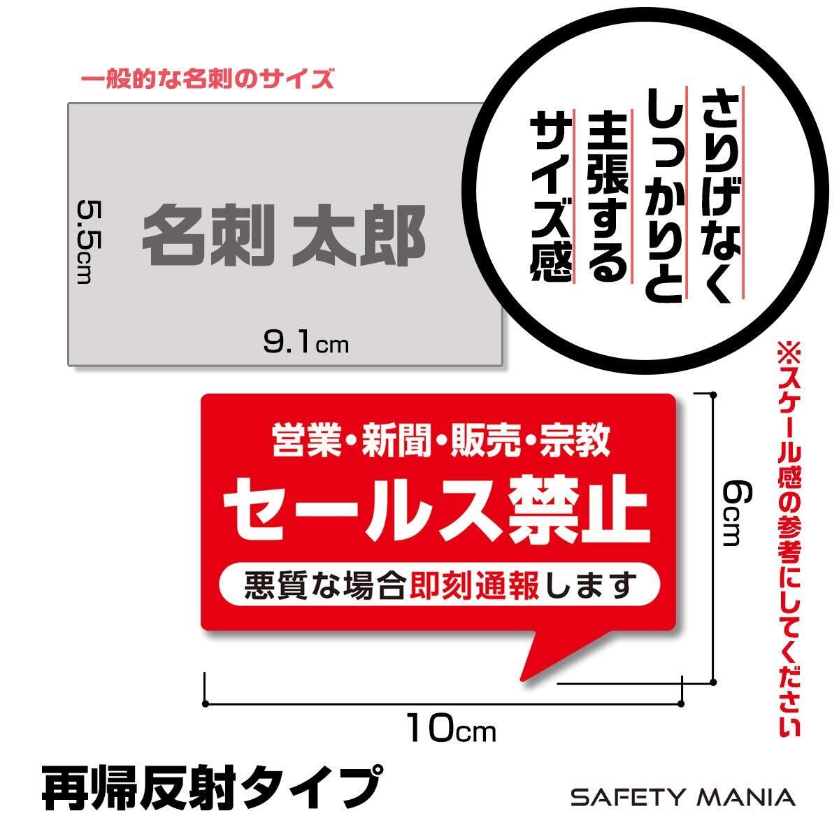 【人気商品】セールス禁止 営業 新聞 訪問販売 宗教 すべてお断り 反射ステッカー シール 悪質な場合 即刻通報 耐候 防水 10cmX6cm (1枚, セールス禁止)