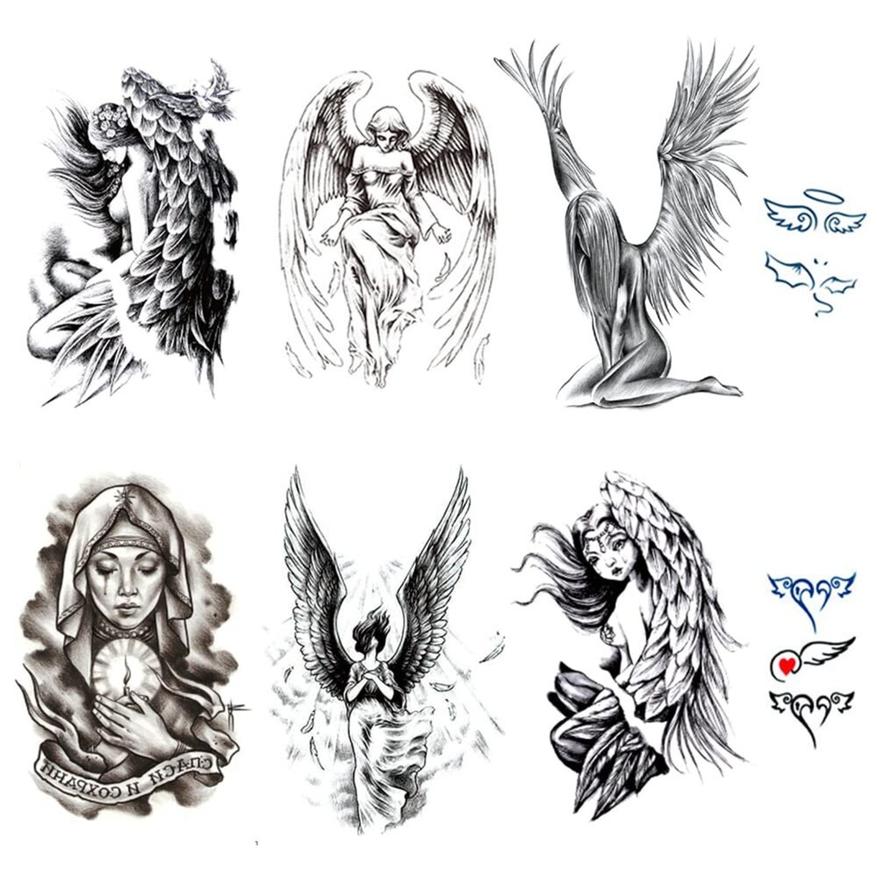 【セット内容】天使 タトゥーシール 8枚セット、各1枚、6枚大型+2枚小型。黒 天使 羽 (天使の翼)、デビル モノクロシルエット、天使の羽 ウィング。