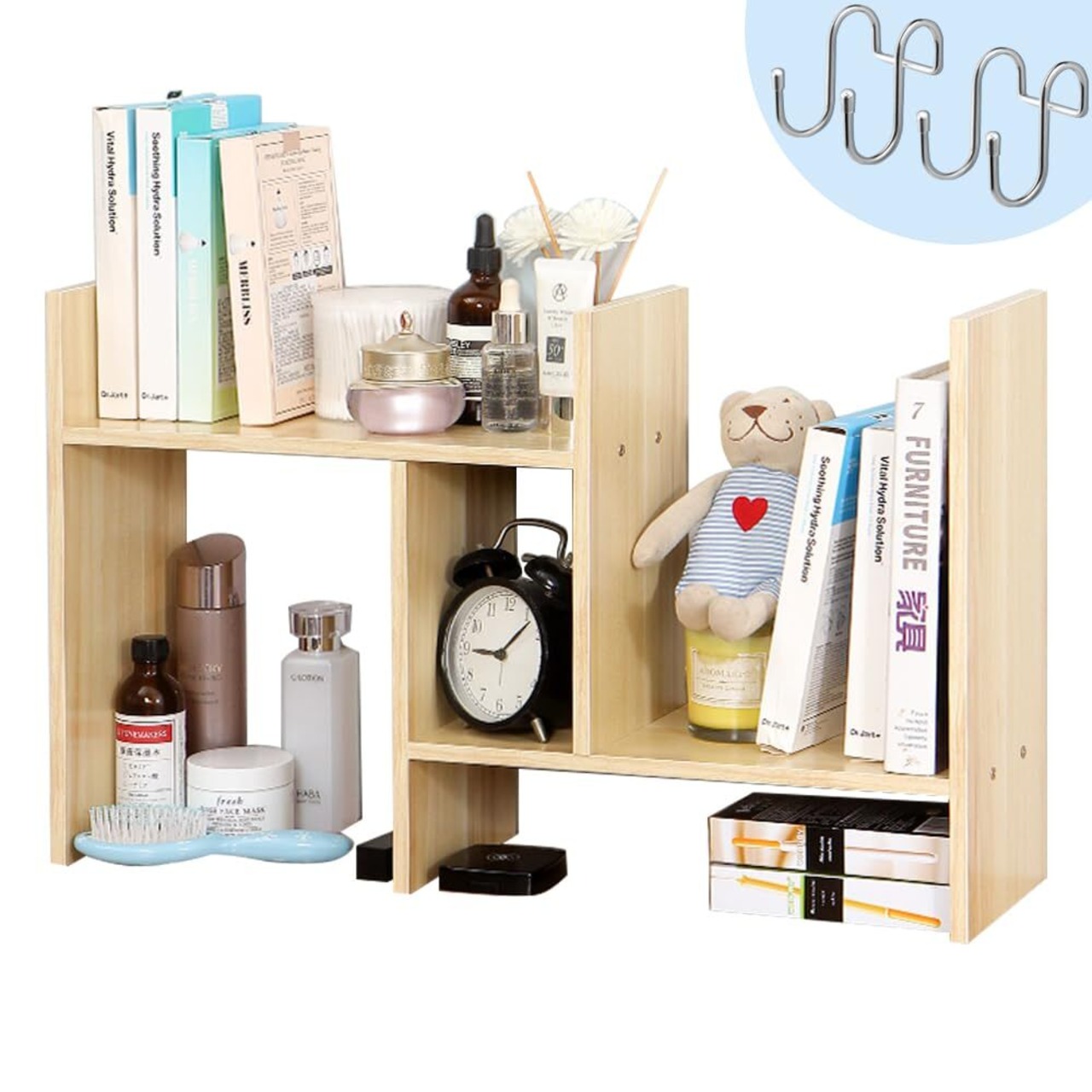 【新春セール】BHCanae デスク上置き棚 卓上収納 木製 卓上ラック 小物入れ デスク上収納ラック 多種組み立て方式 自由自在伸縮可 本 収納 こものいれ 収納 オフィス ほんだな 収納棚 絵本棚【日本語取付説明書付属】(胡桃色) | ニコニコSHOP