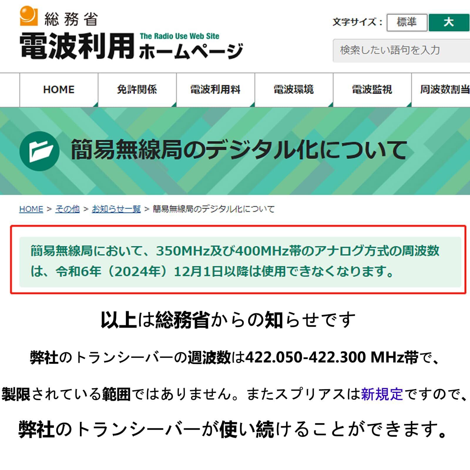 周波数範囲 422.050~422.300MHz
