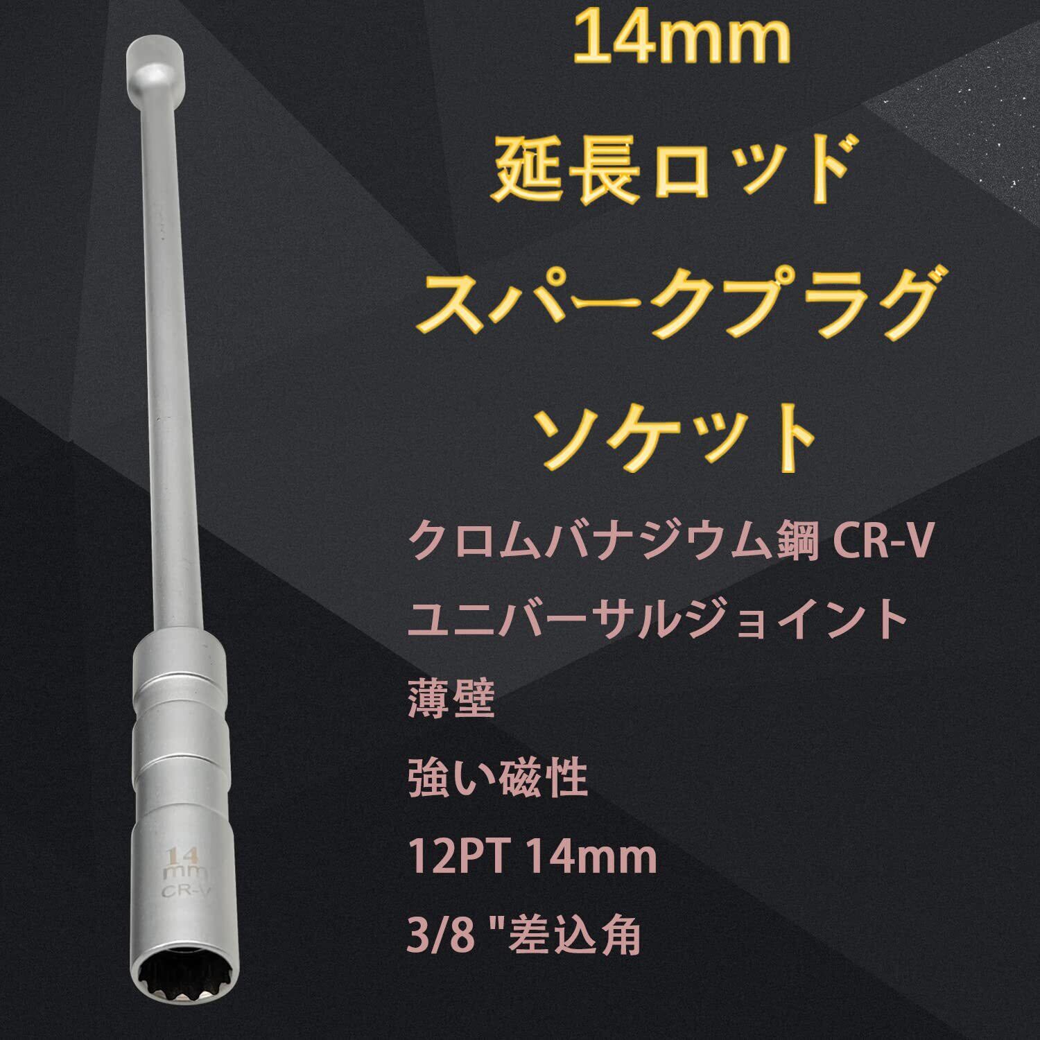 【在庫処分】ZKTOOL 14mm / 16mm アップグレード版 エクステンションロッド付きスパークプラグレンチセット 磁気ユニバーサルジョイント スパークプラグソケットセット 差込角3/8インチ 9.5mm 12コーナー薄壁 (14mm) | ニコニコSHOP