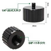 【ネジ規格注意】メスネジ規格1/4 "-20とは外径1/4インチ(6.35mm)で1インチ辺り20山という規格を表します。オスネジ5/8" -11とは外径5/8インチ(15.875mm)で1インチ辺り11山という規格を表示します。※購入する前はネジ規格が合うかどうかをご注意ください。