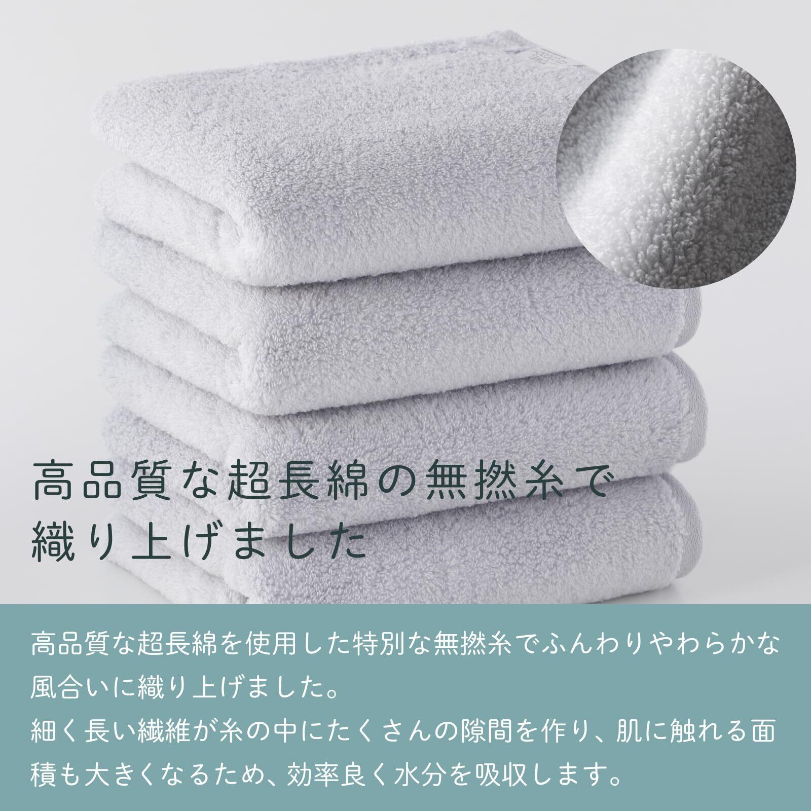【しっかり吸水 ふっくらボリューム】 フェイスタオル タオル心地 (towel cocochi) 吸水さらり ライトグレー 4枚 セット 34 × 80cm ふわふわ 柔らかい 肌触り 速乾 毛羽落ち試験済み 耐久性 サステナブルコットン 超長綿 無撚糸