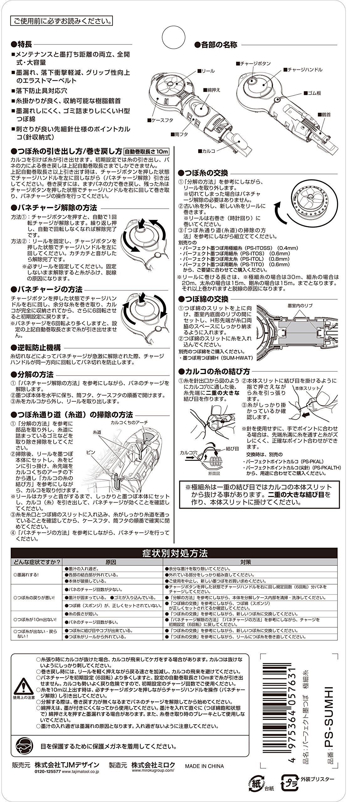 タジマ(Tajima) パーフェクト墨つぼ 極細糸 糸長さ20m PS-SUMHI