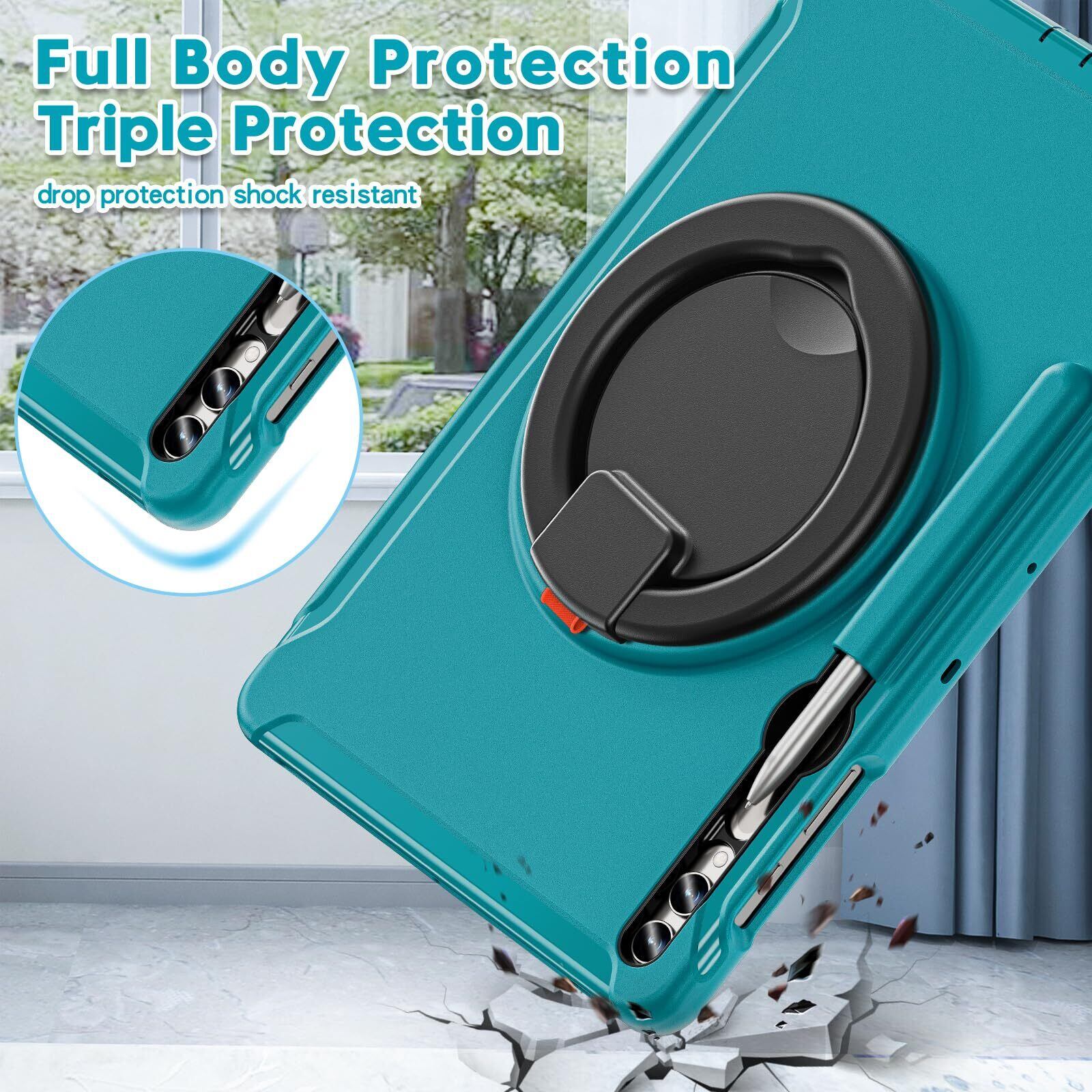 全面保護:非常に高い耐久性PCと柔軟で耐衝撃性高いシリコン素材を使用したソフトケース。端末にしっかりフィットして Tab S10+/S9 FE+/S9 Plus/S7+/S8 Plus/S7 FE 12.4" を保護します。