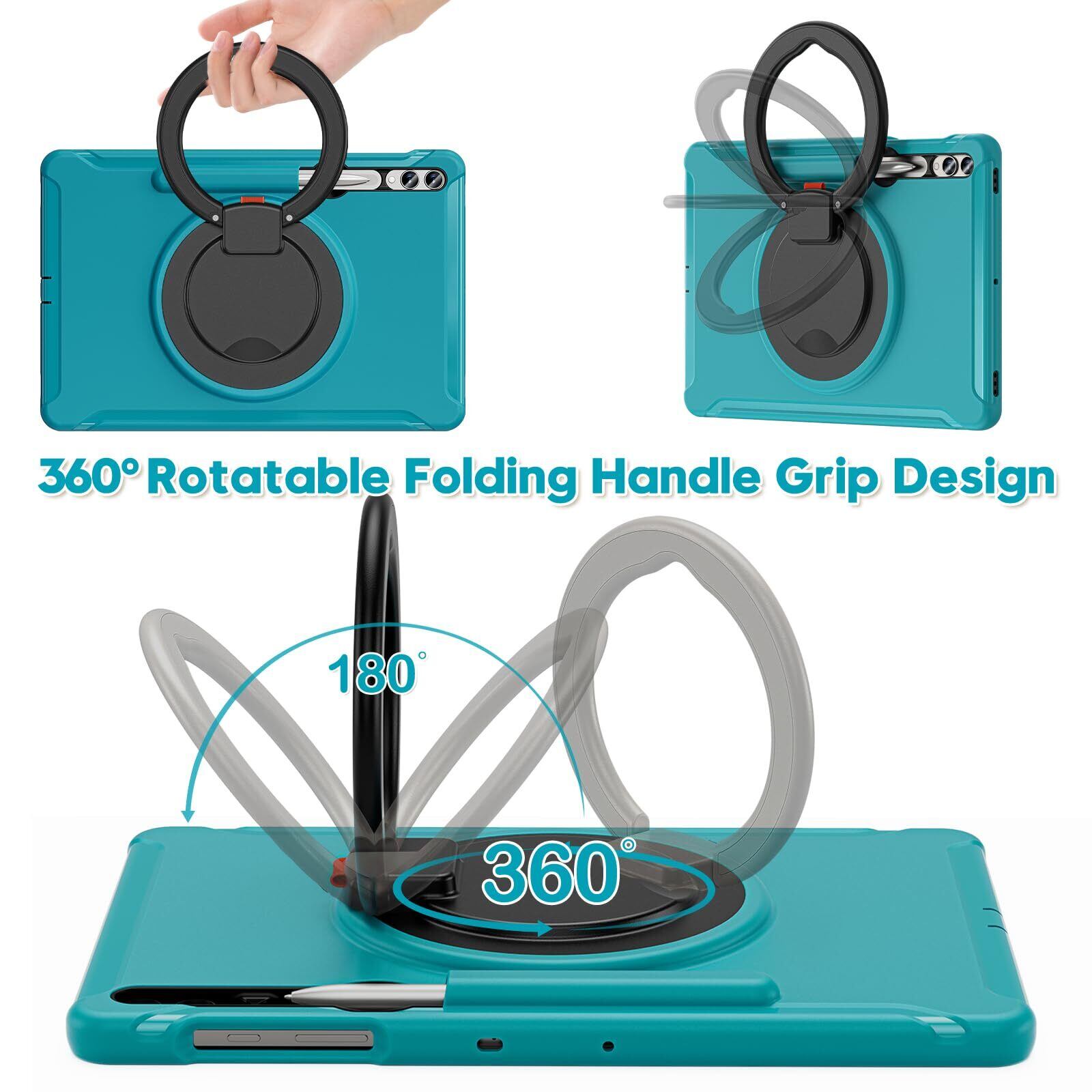 360度回転 スタンド Galaxy Tab S10+/S9 FE+/S9+/S8+/S7+/S7 FE 12.4インチ ケース 衝撃吸収 頑丈 持ち手付き ハンドル付 Android タブレット ギャラクシー Tab S10+/S9 FE+/S9 Plus/S7 Plus/S7 FE/S8 Plus 12.4" カバー 落下防止 S Pen 收納 子供 ケース, ブルー
